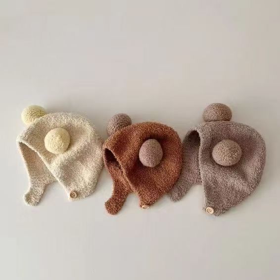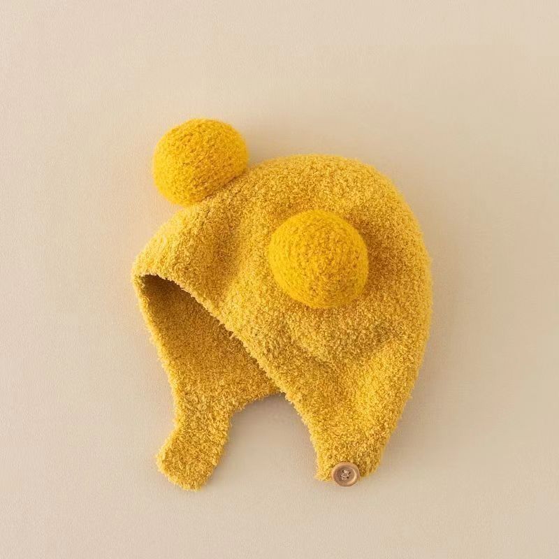 아기 모자 귀 보호 모자 아기 태아 모자 가을과 겨울 따뜻한 모자 니트 울 모자 귀여운 더블 볼 캡