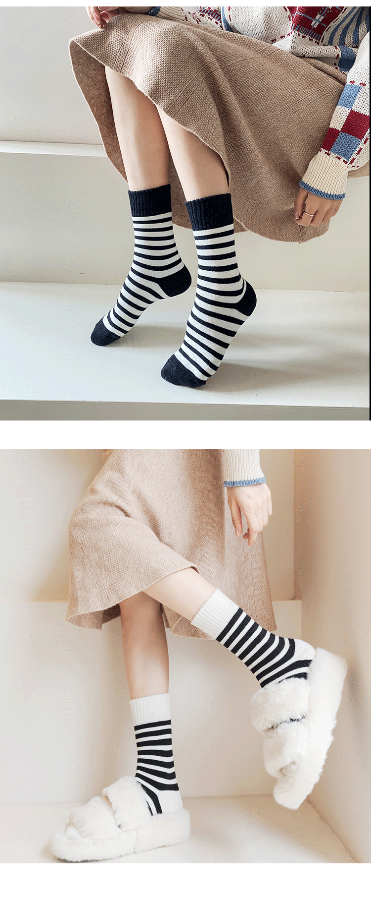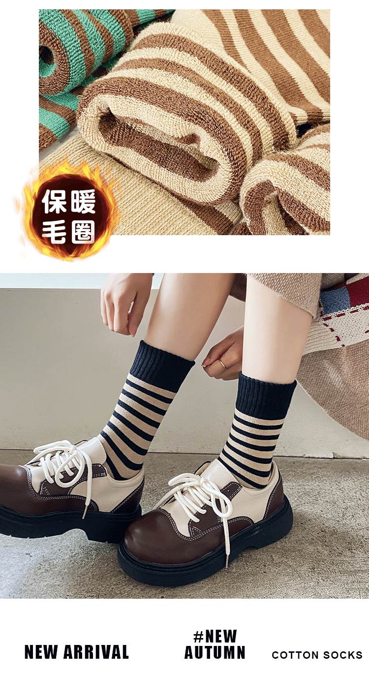 두꺼운 중추와 겨울 양말 기모 줄무늬 양말 일본식 여성 테리 양말 홈 따뜻한 바닥 양말 편안한 여성용 양말스토어 가기