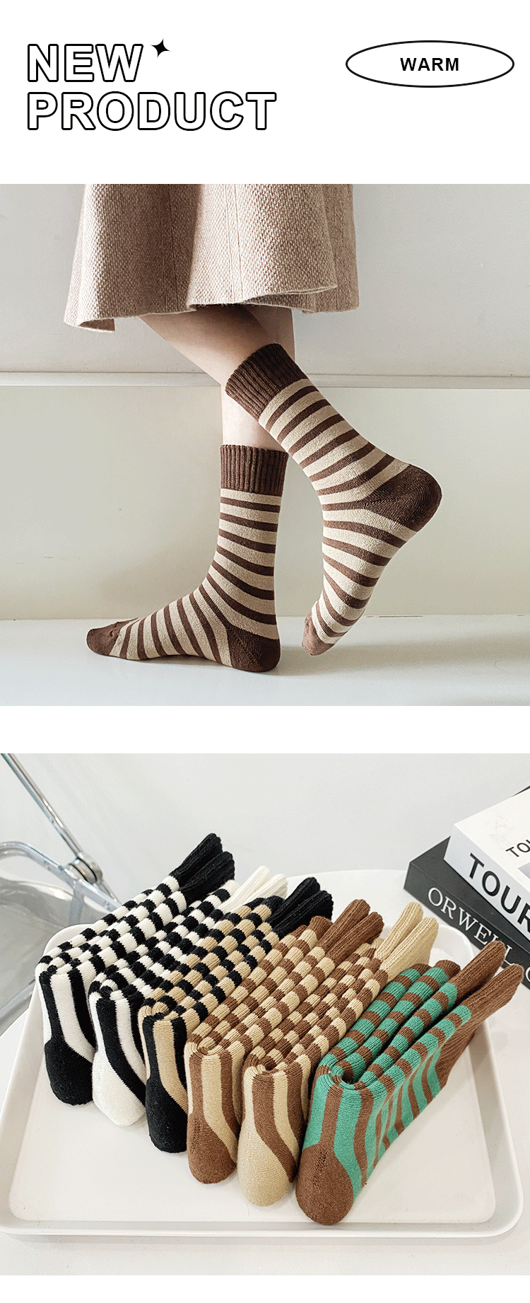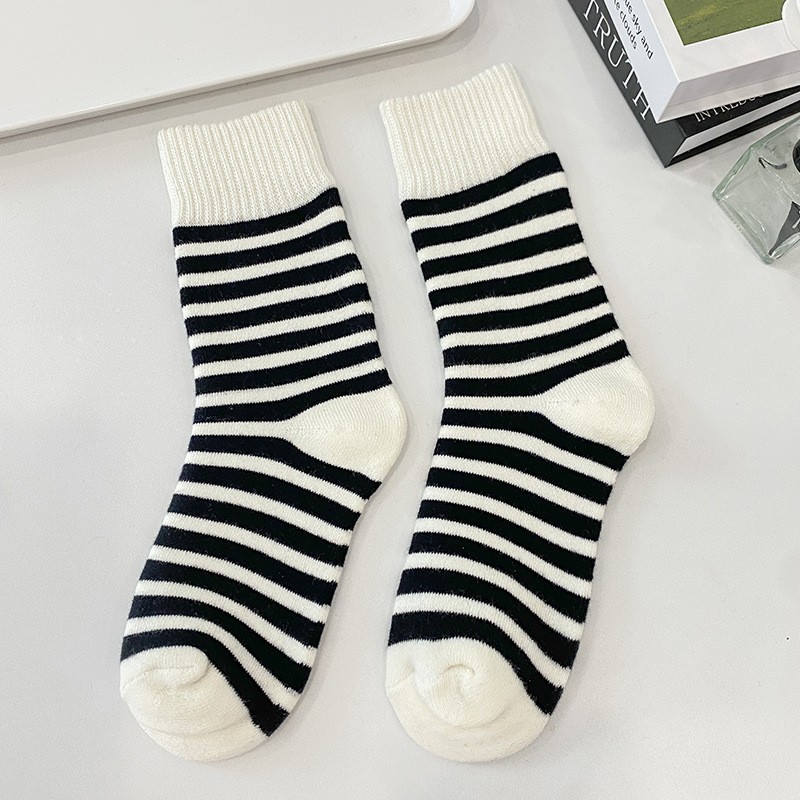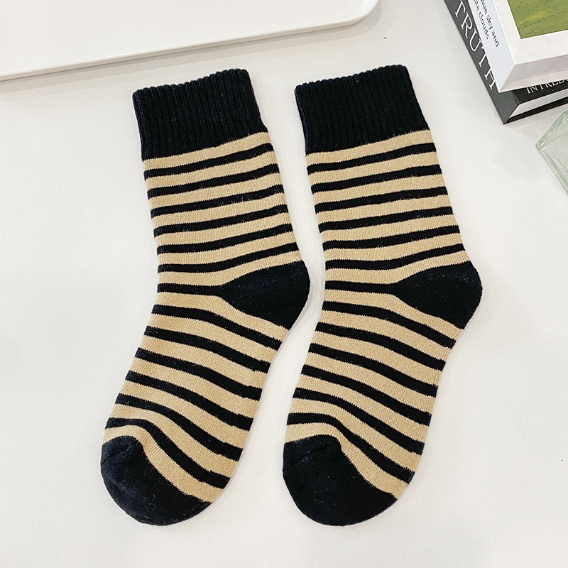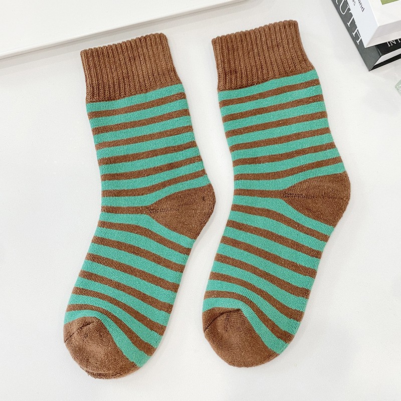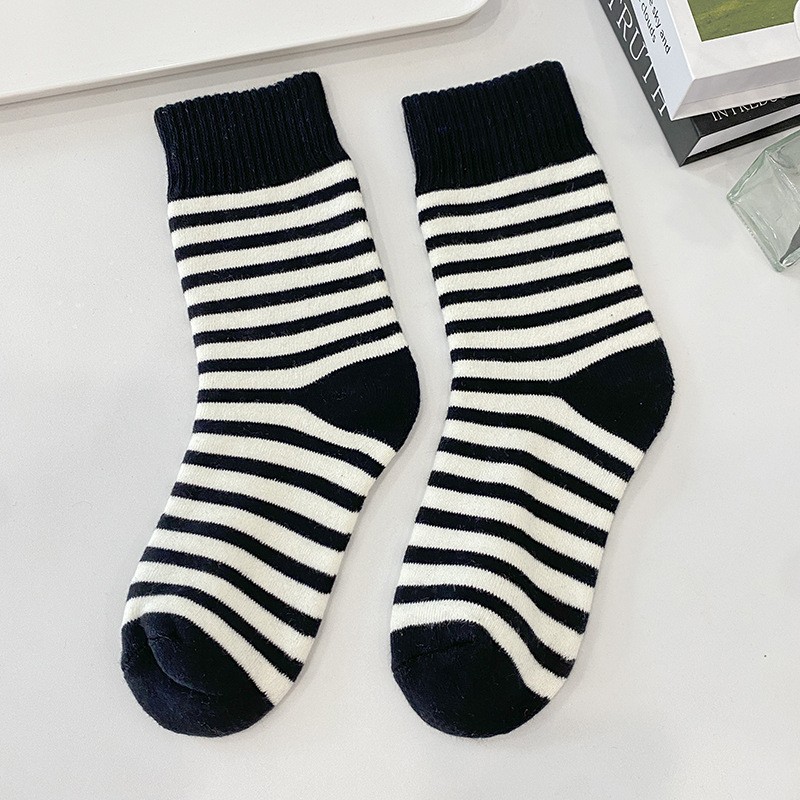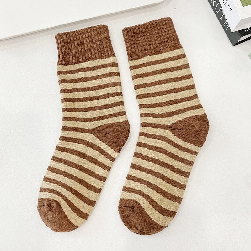 두꺼운 중추와 겨울 양말 기모 줄무늬 양말 일본식 여성 테리 양말 홈 따뜻한 바닥 양말 편안한 여성용 양말
