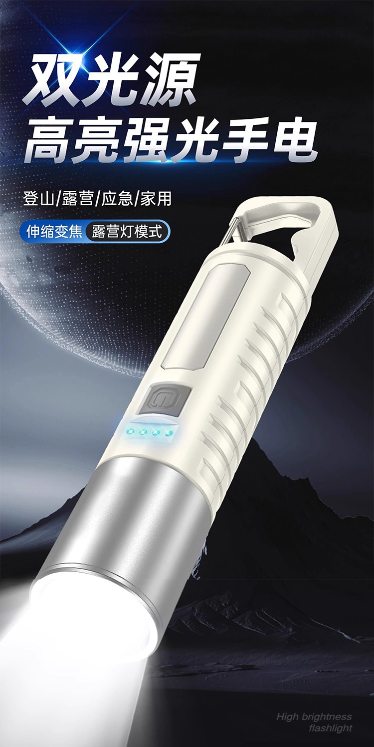새로운 LED 다기능 강한 빛 손전등 후크 야외 휴대용 긴 내구성 망원경 줌 긴 촬영 손전등