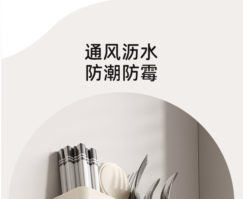 • [밀크화이트] 흡착컵 젓가락통 - 배수 트레이 포함