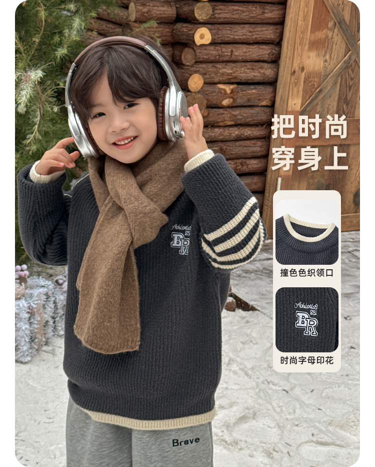 해마가족 아동복 남아 스웨터 2024 겨울 신상 아동용 따뜻한 니트 상의 가을 겨울용 이너웨어 트렌디스토어 가기