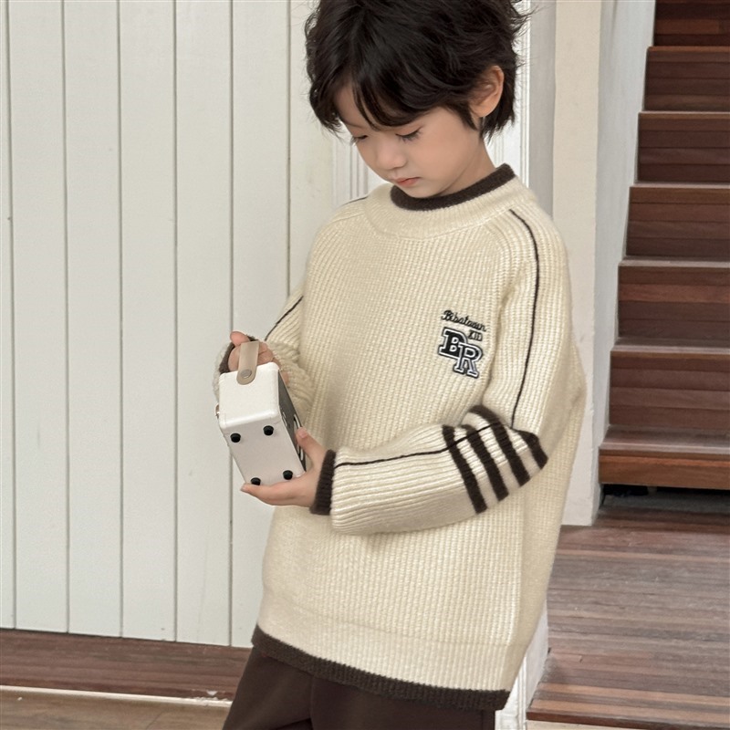 해마가족 아동복 남아 스웨터 2024 겨울 신상 아동용 따뜻한 니트 상의 가을 겨울용 이너웨어 트렌디
