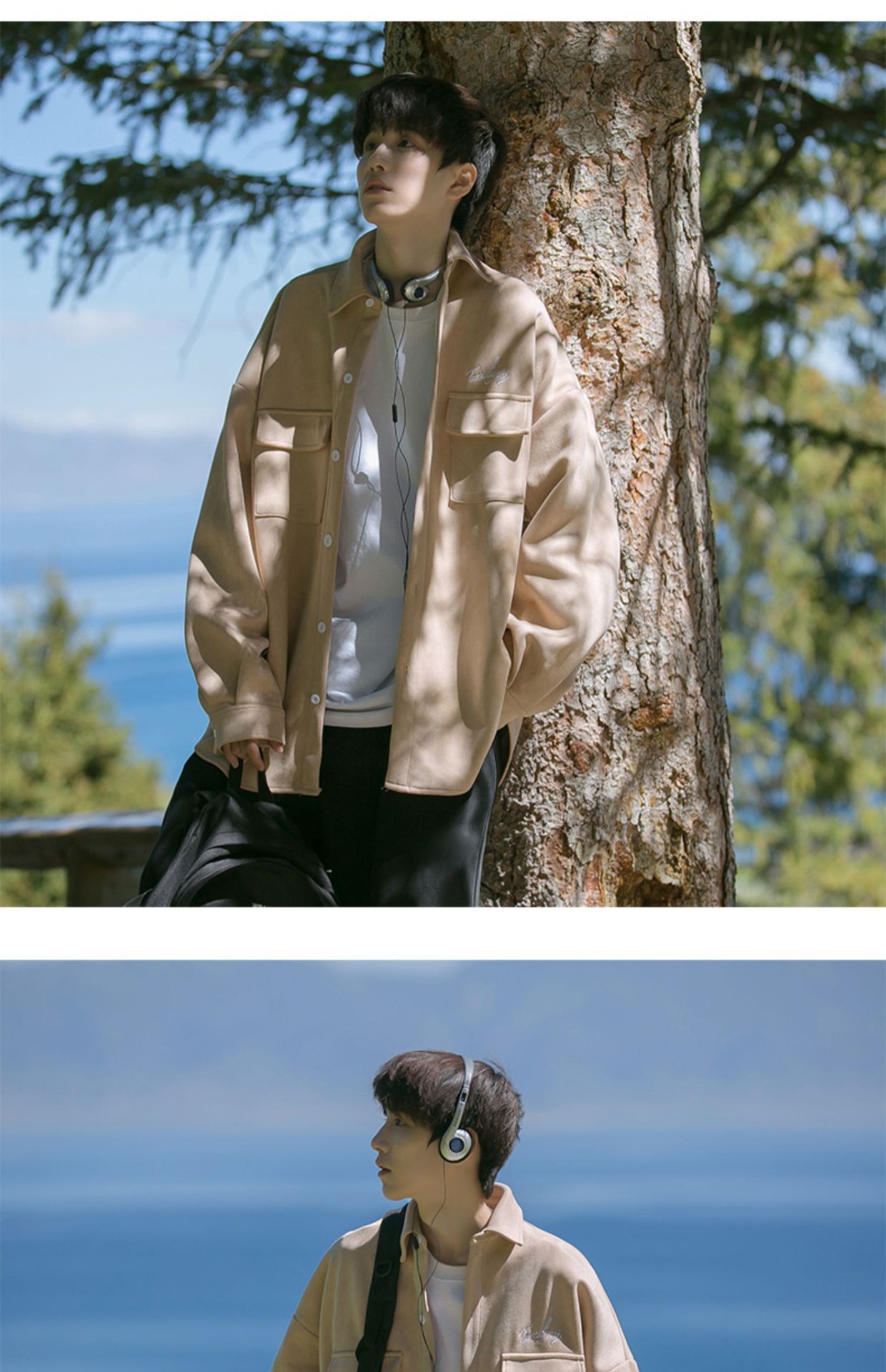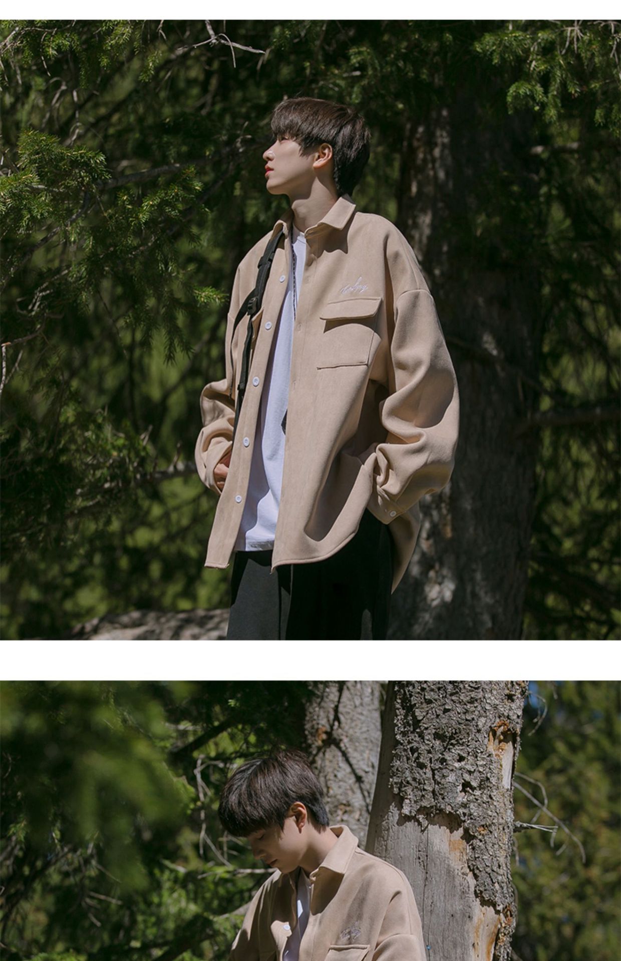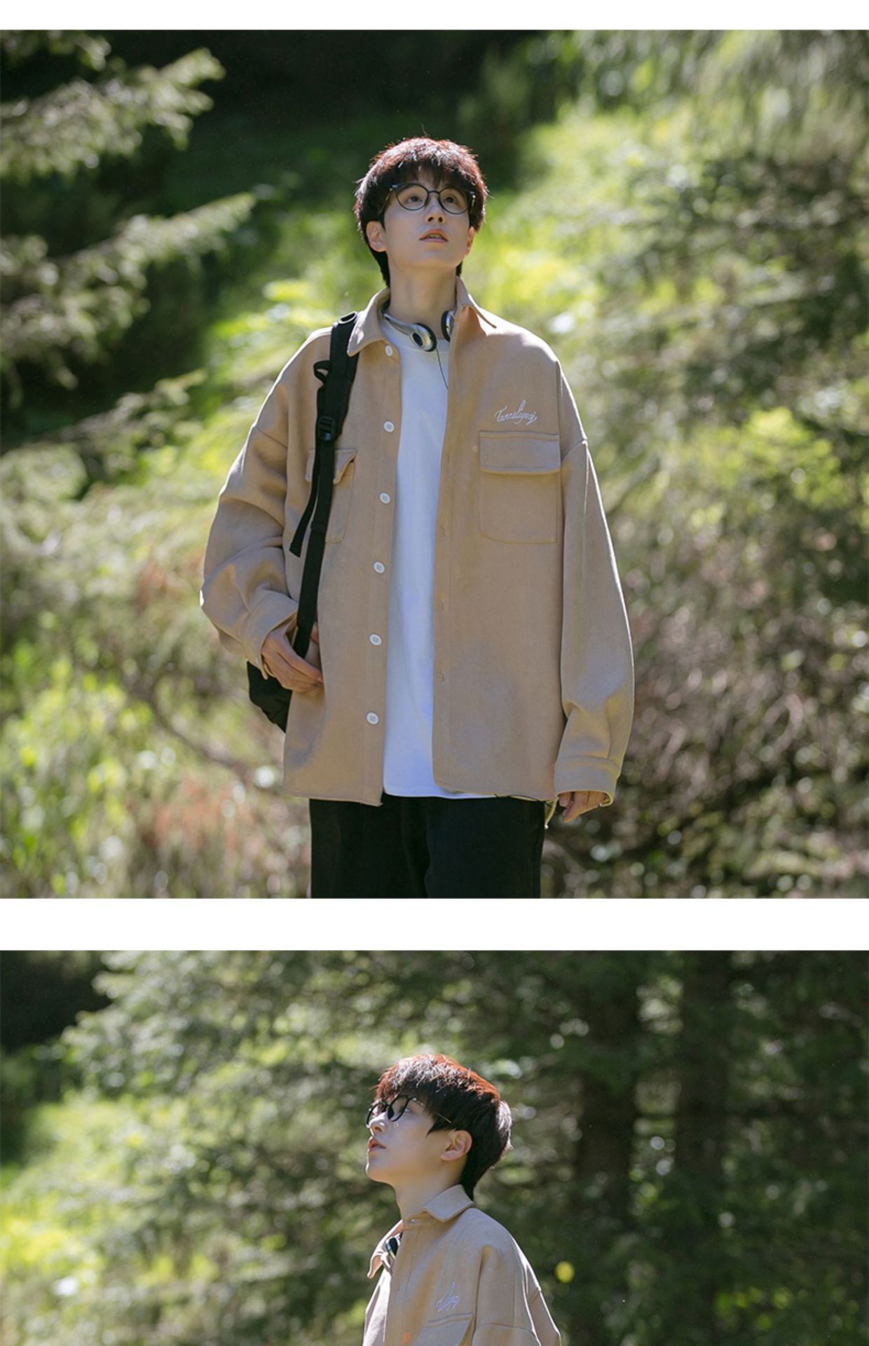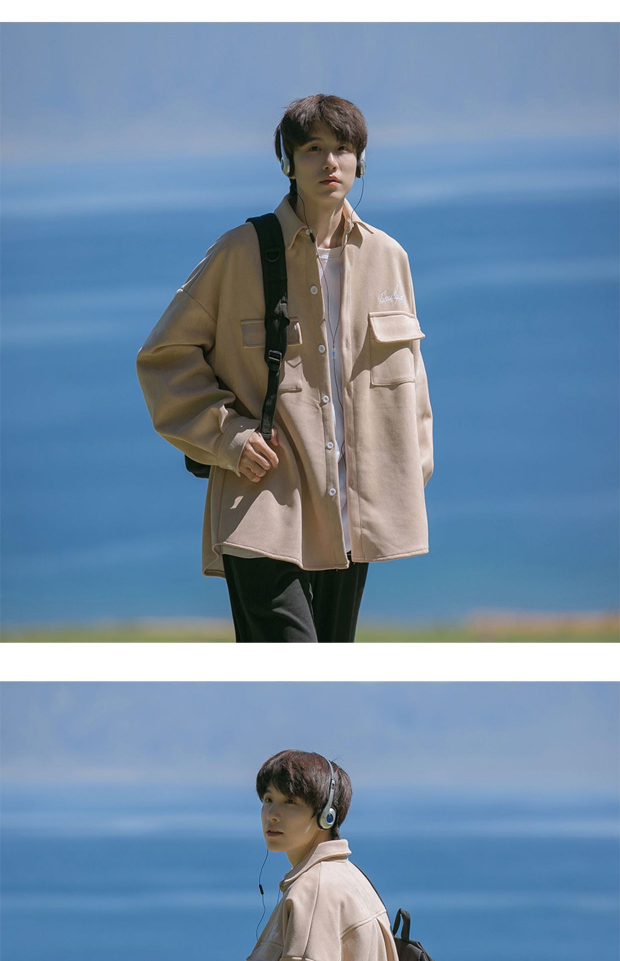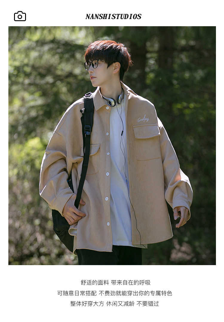 카키 긴팔 셔츠 남자의 봄과 가을 하이 스트리트 Ins 인기 브랜드 루즈 캐주얼 센스 Fuckin '잘 생긴 셔츠 재킷