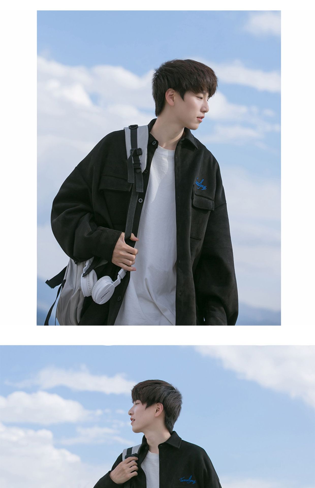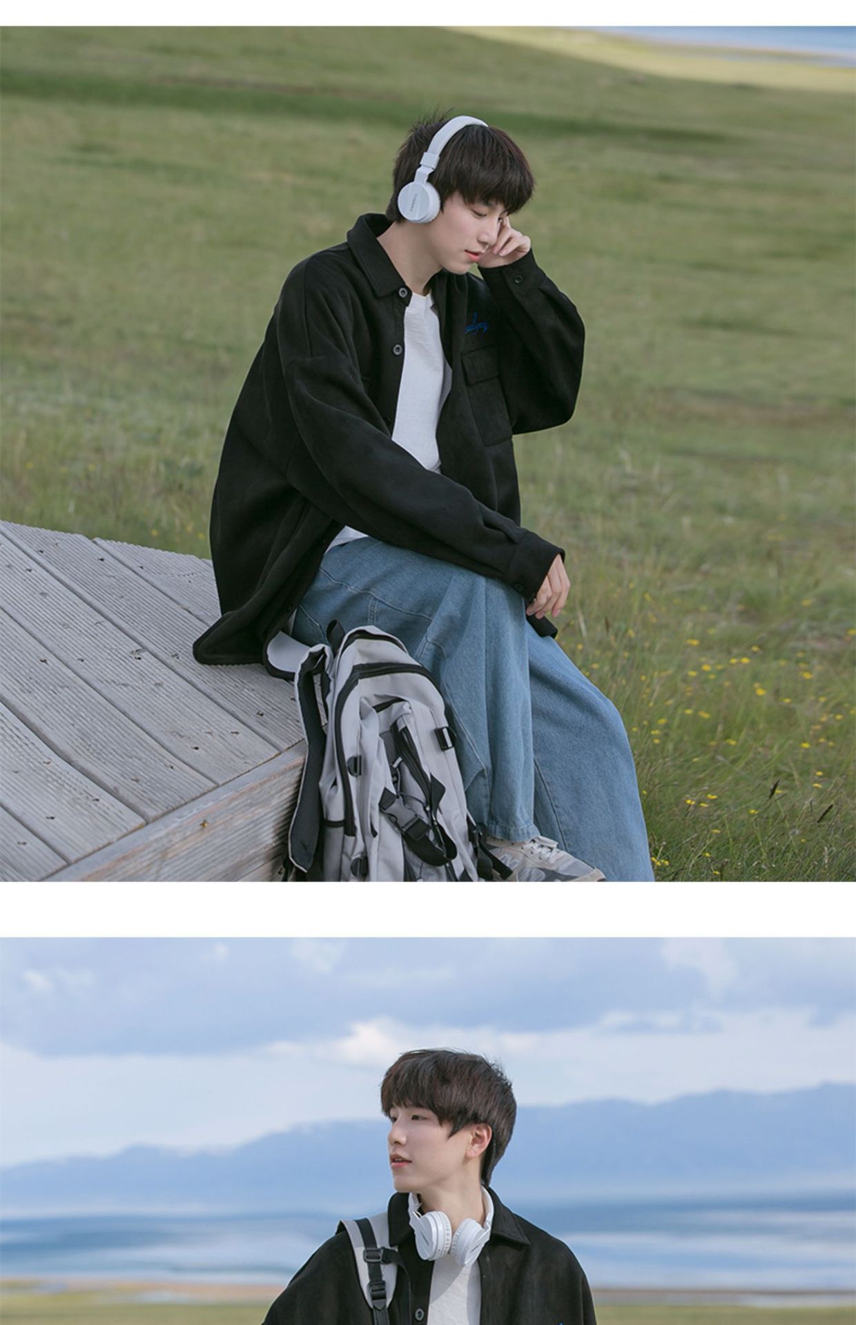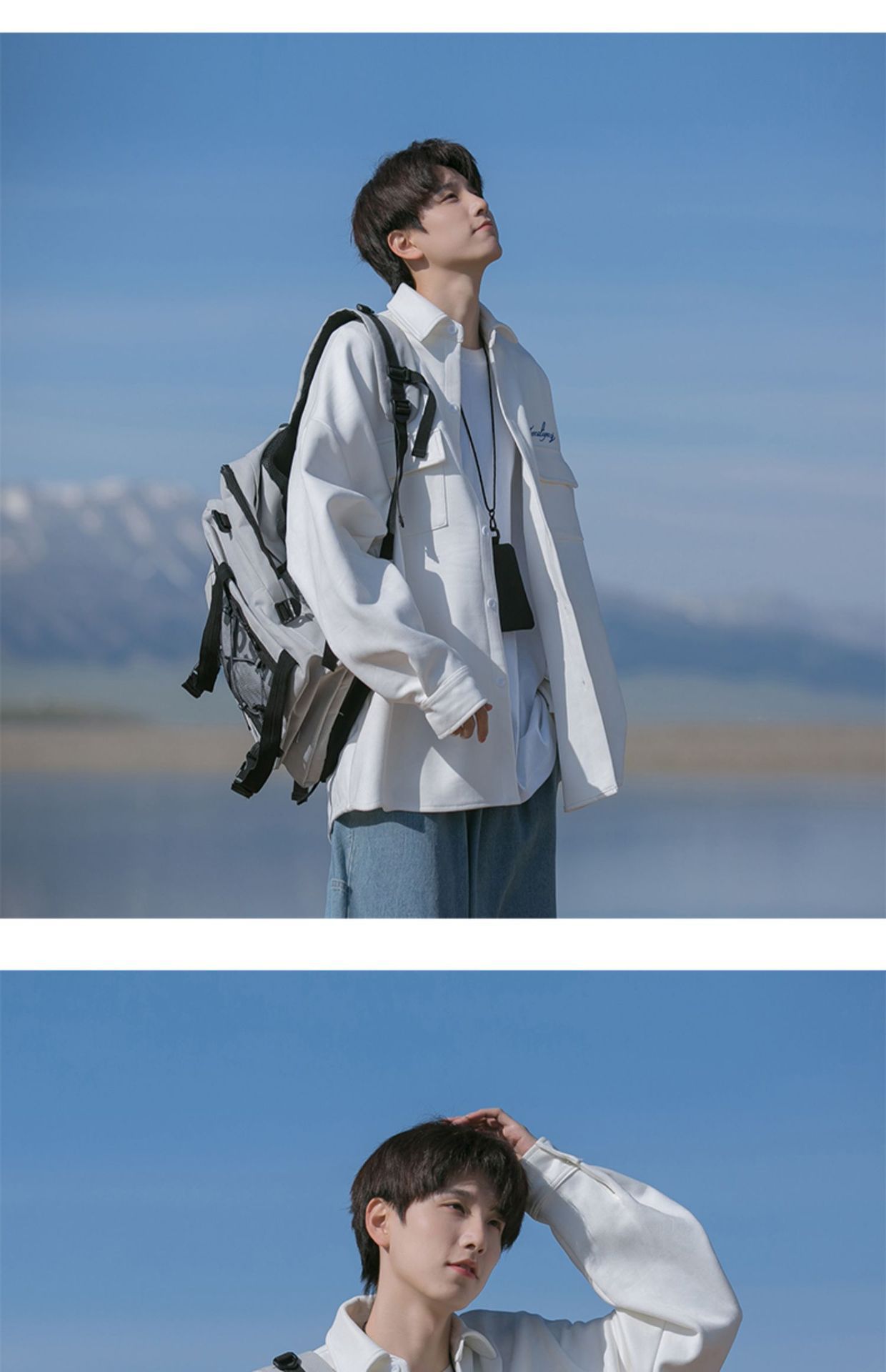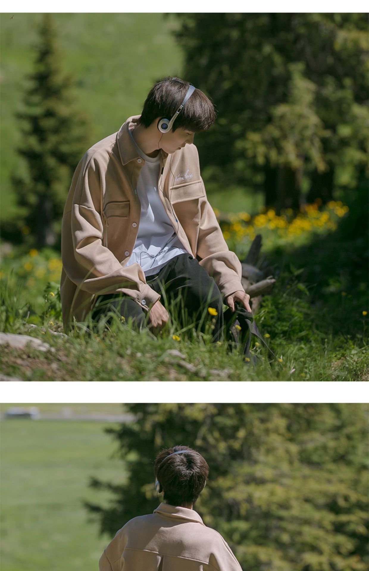 카키 긴팔 셔츠 남자의 봄과 가을 하이 스트리트 Ins 인기 브랜드 루즈 캐주얼 센스 Fuckin '잘 생긴 셔츠 재킷