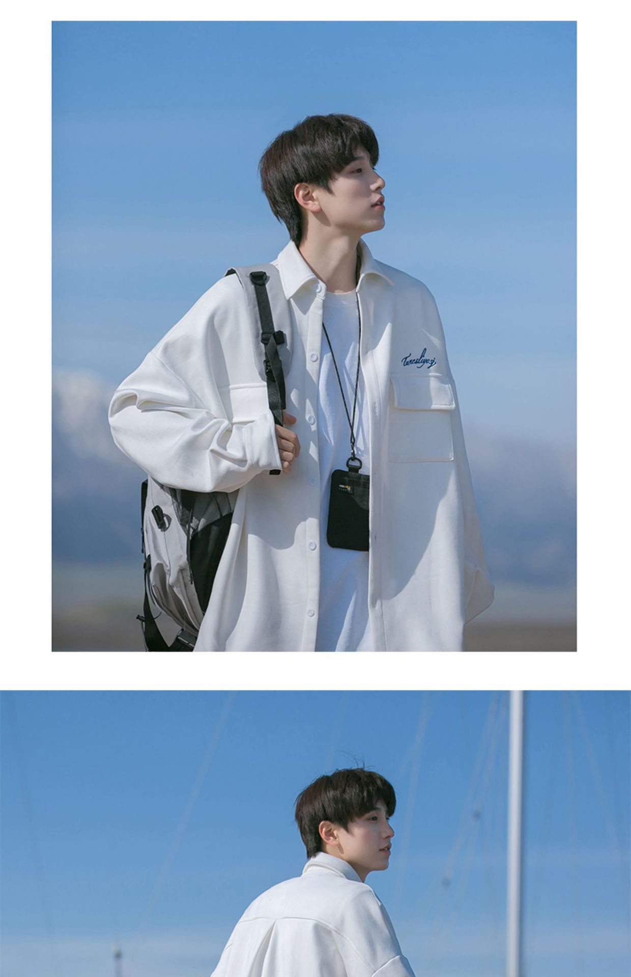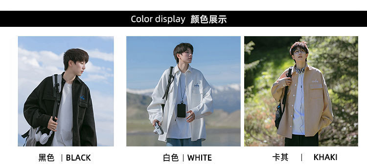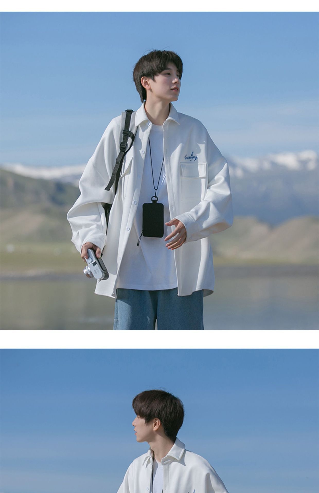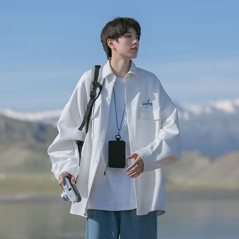 카키 긴팔 셔츠 남자의 봄과 가을 하이 스트리트 Ins 인기 브랜드 루즈 캐주얼 센스 Fuckin '잘 생긴 셔츠 재킷스토어 가기
