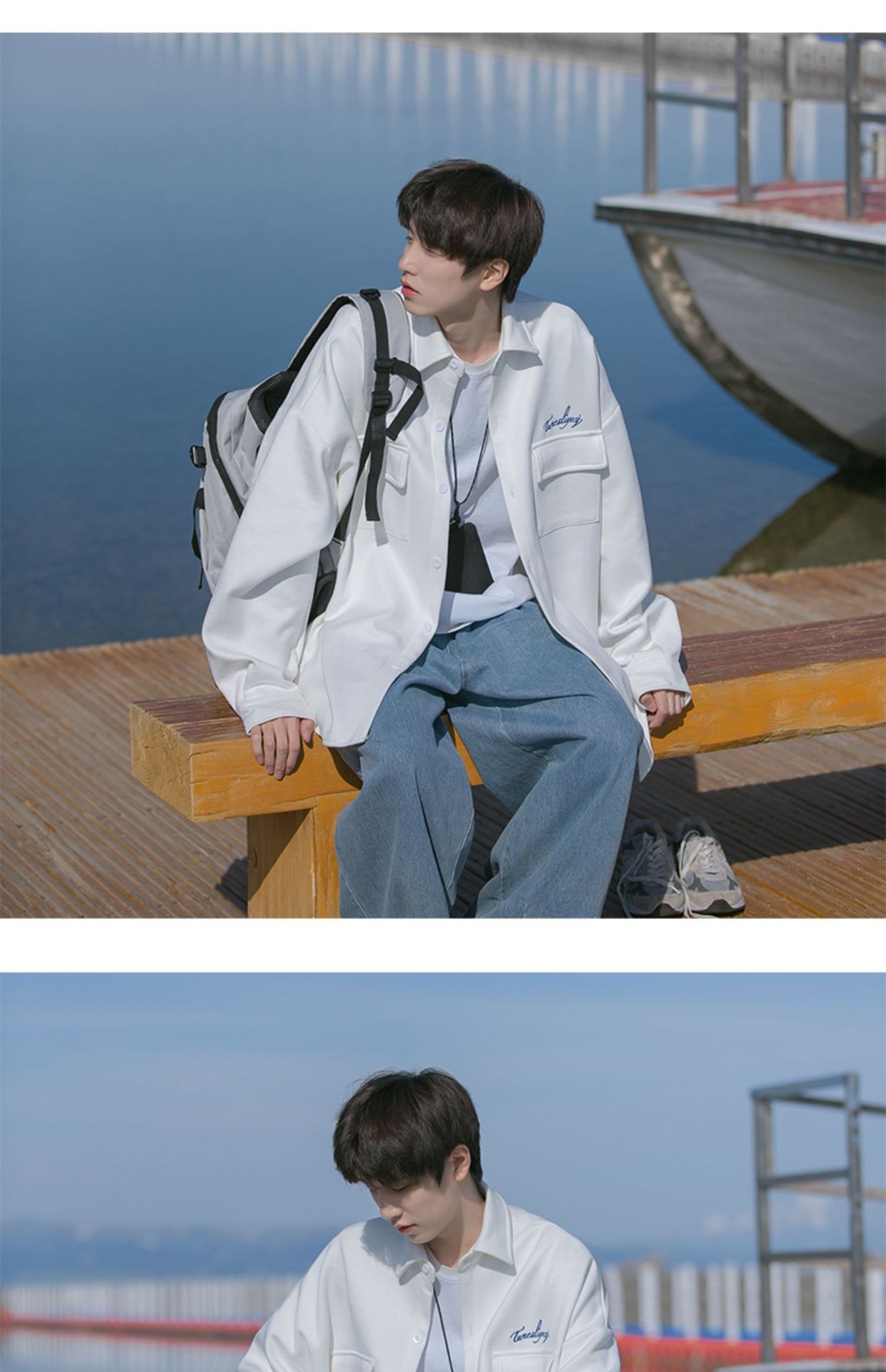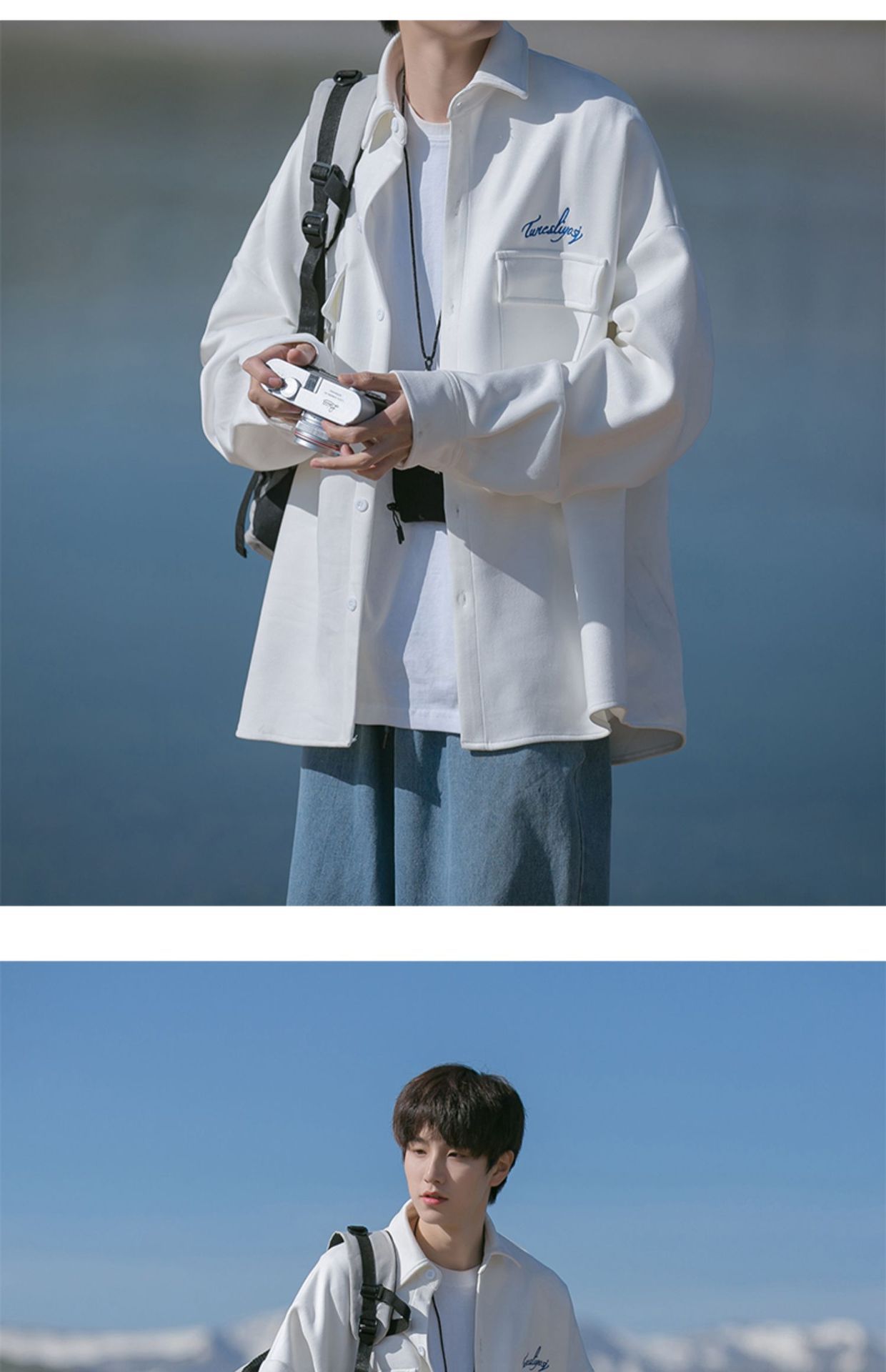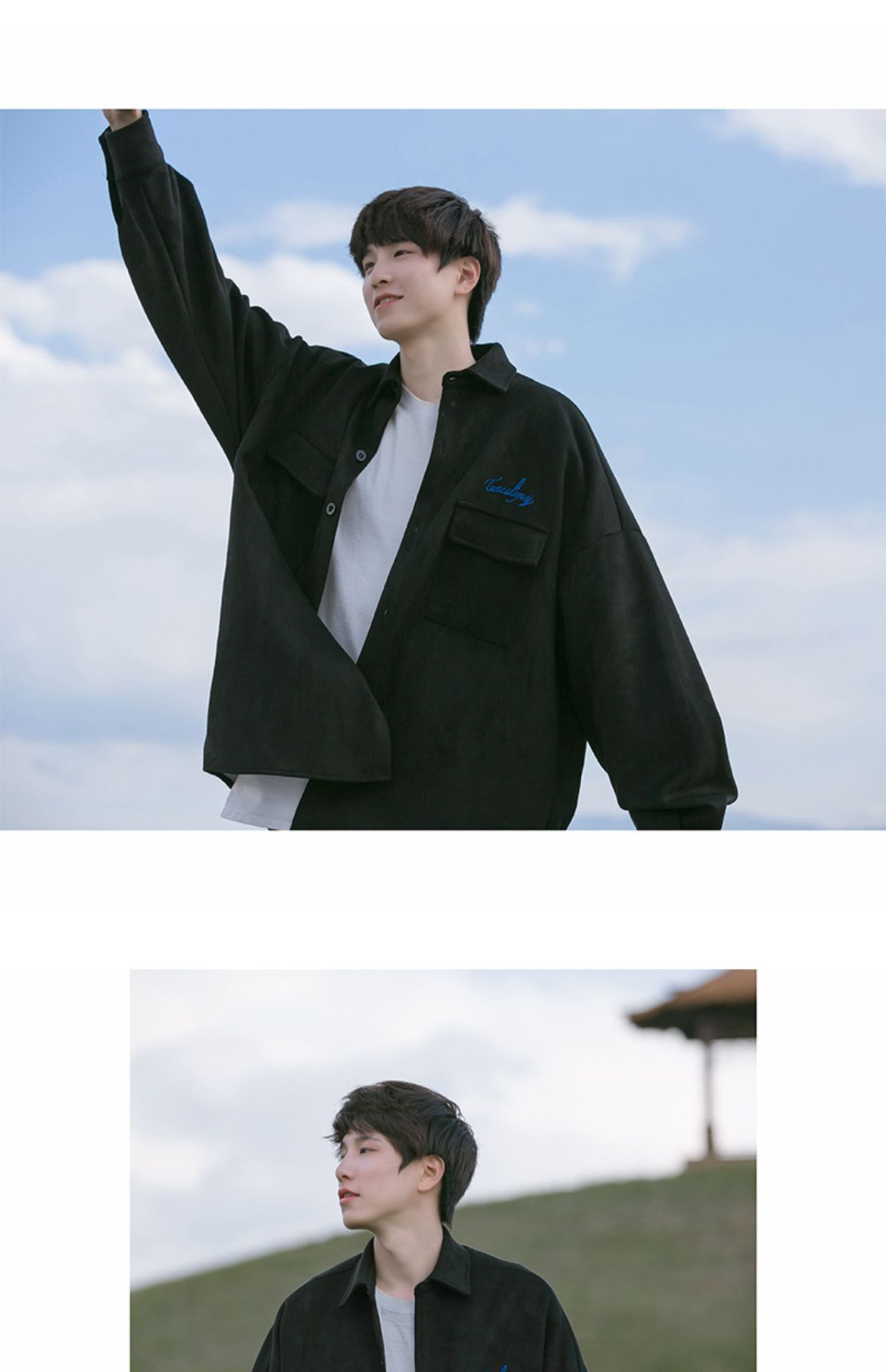 카키 긴팔 셔츠 남자의 봄과 가을 하이 스트리트 Ins 인기 브랜드 루즈 캐주얼 센스 Fuckin '잘 생긴 셔츠 재킷스토어 가기