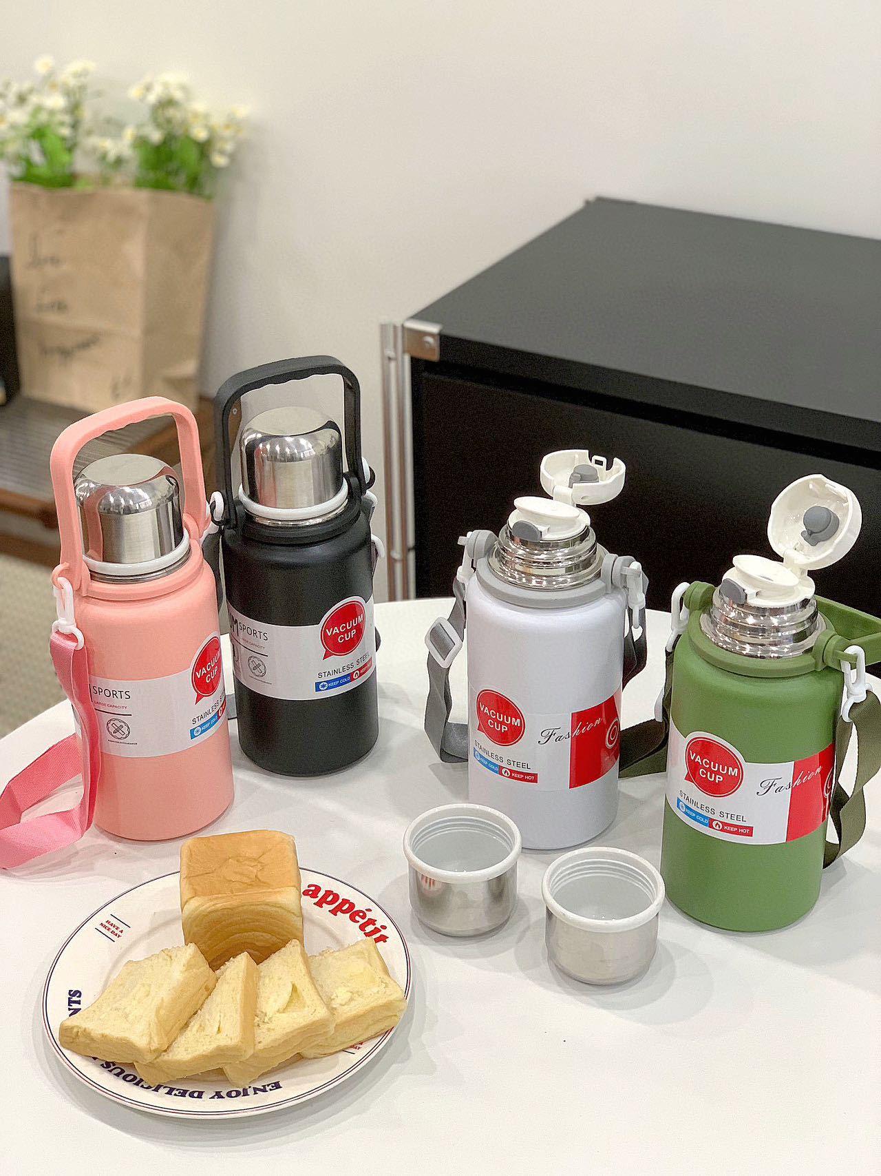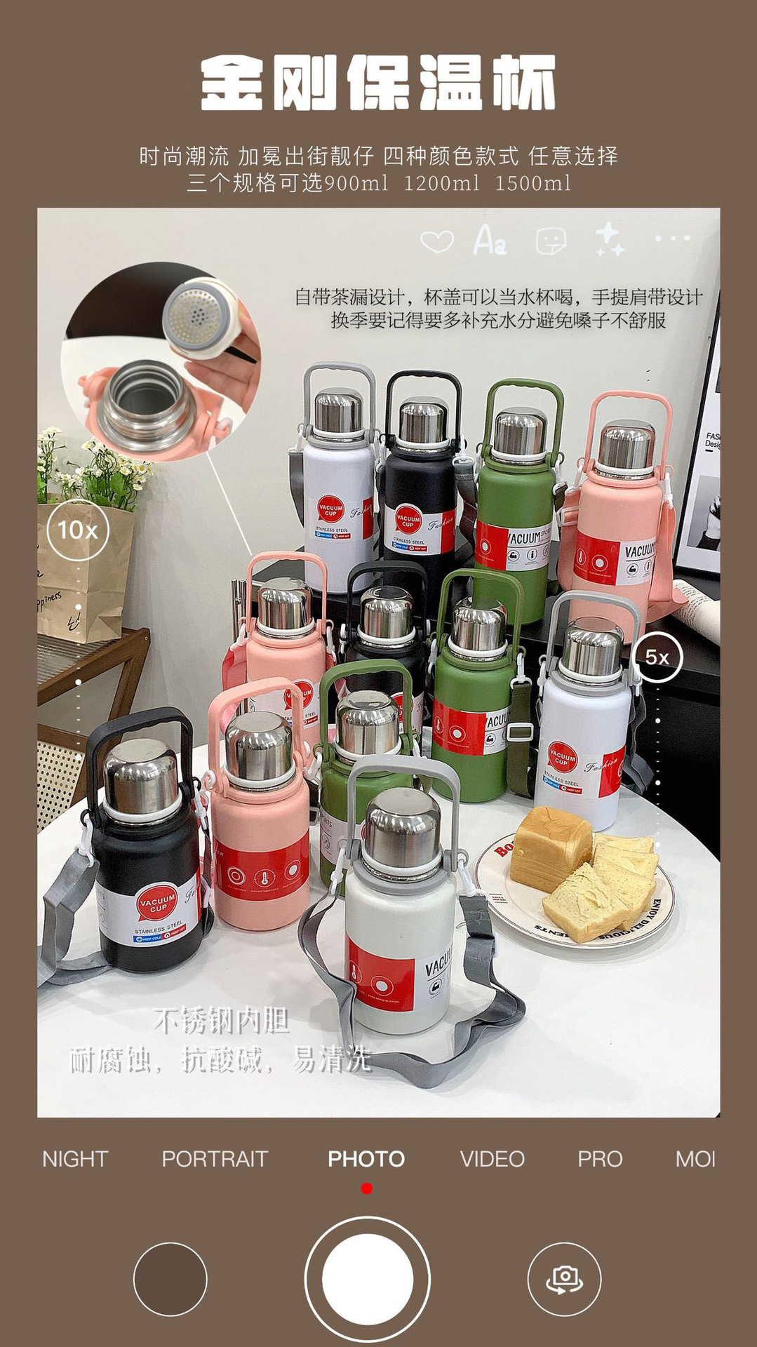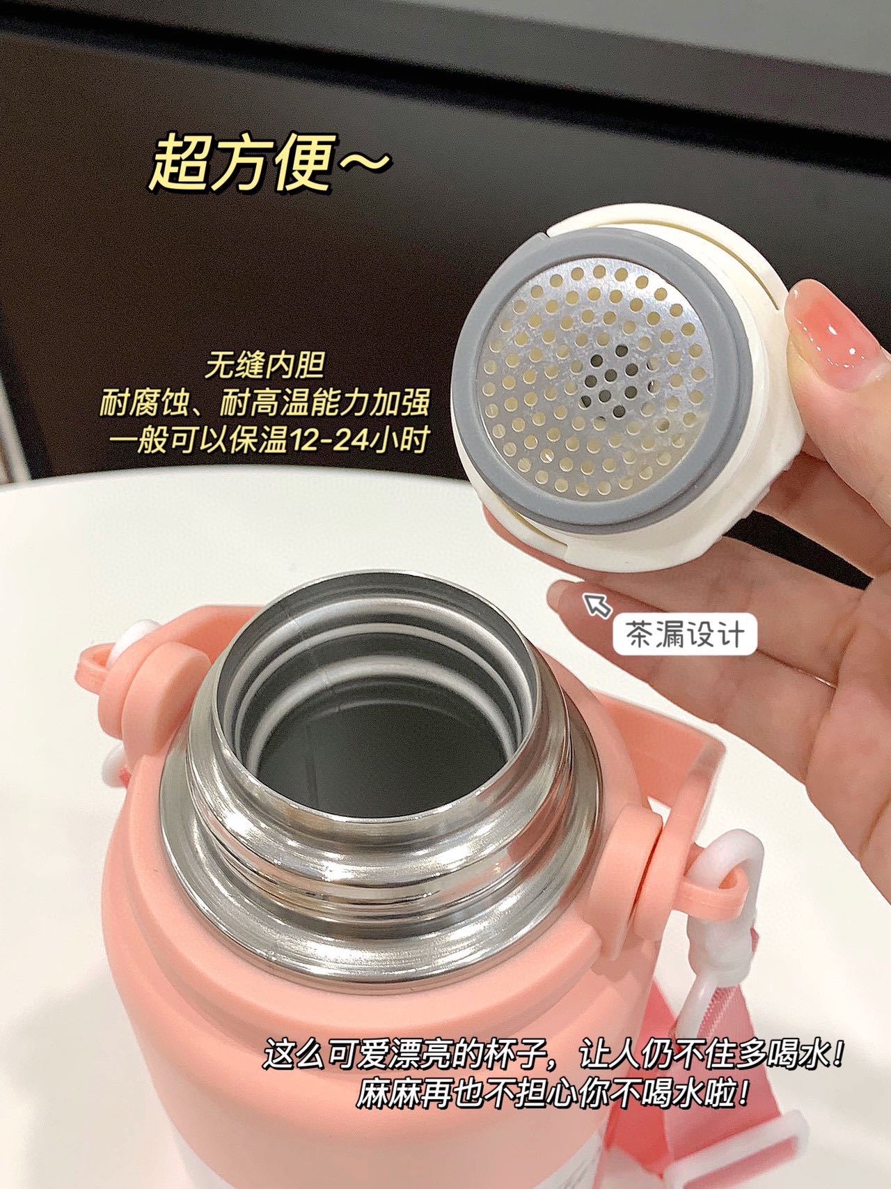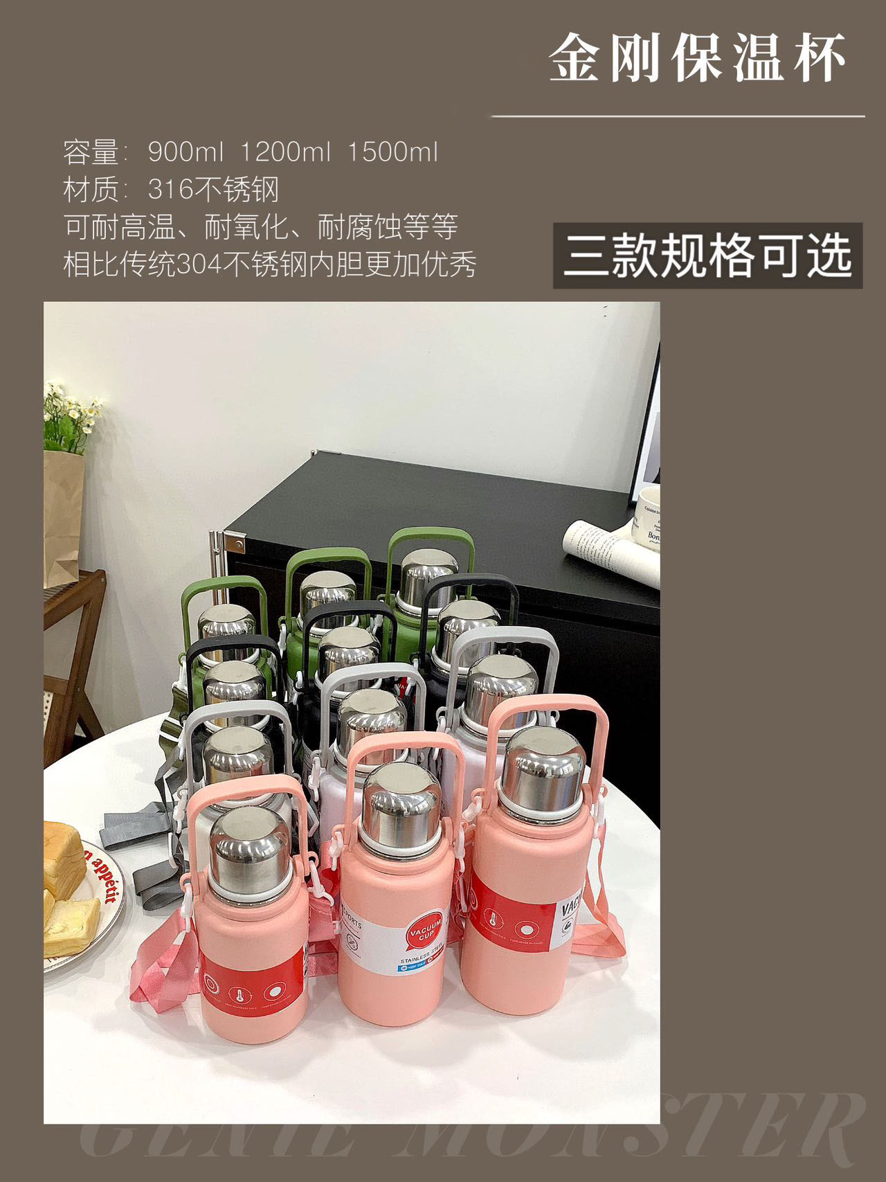 • 900ml 골드 스틸 보온병 컵