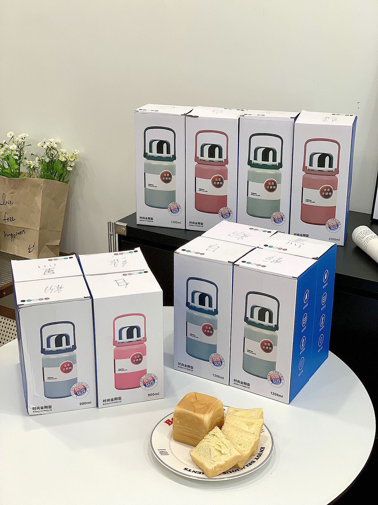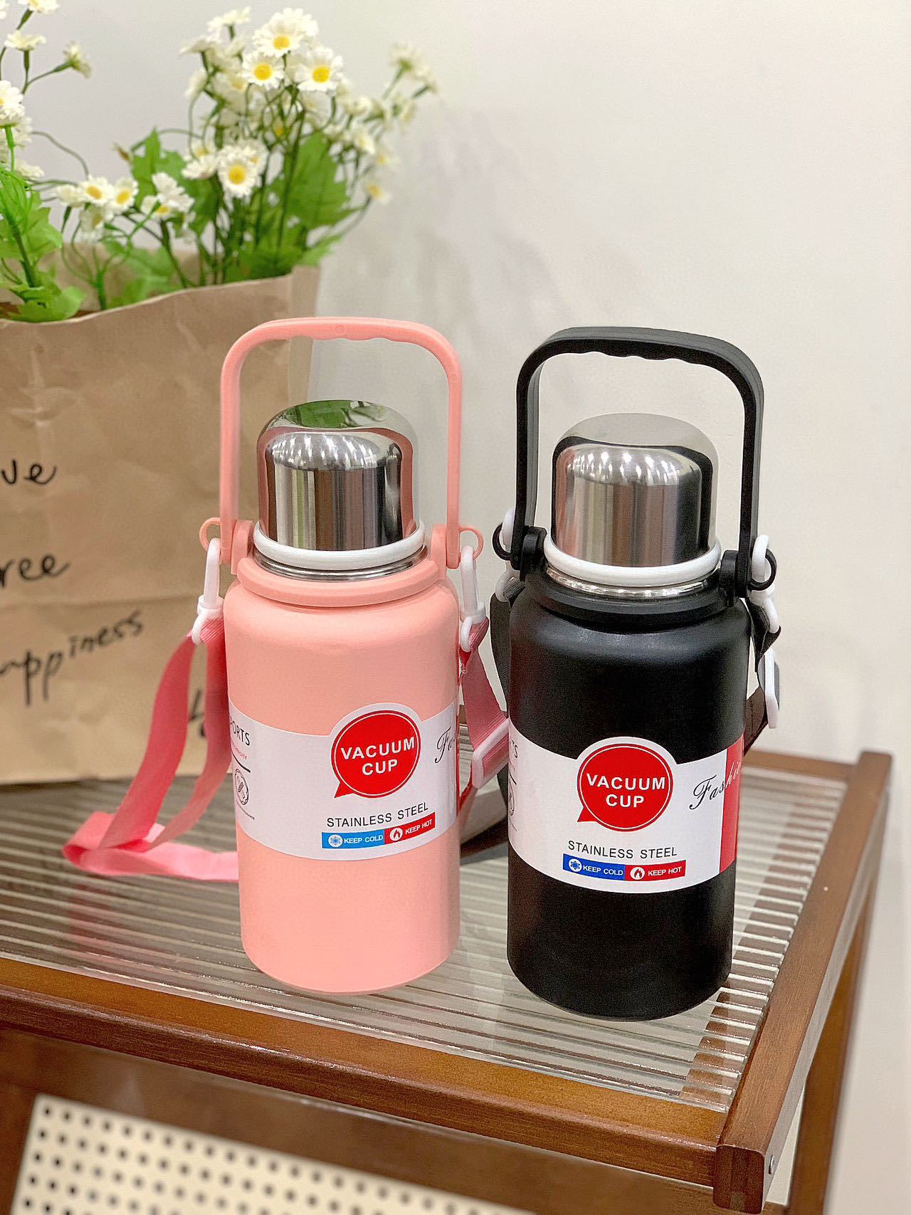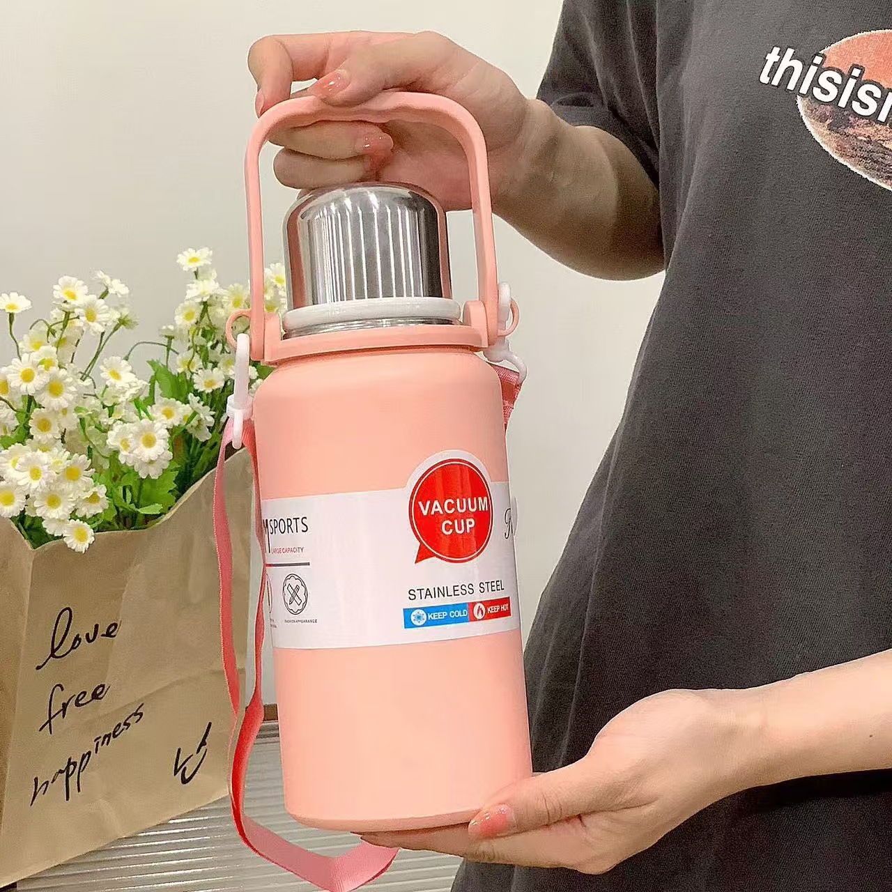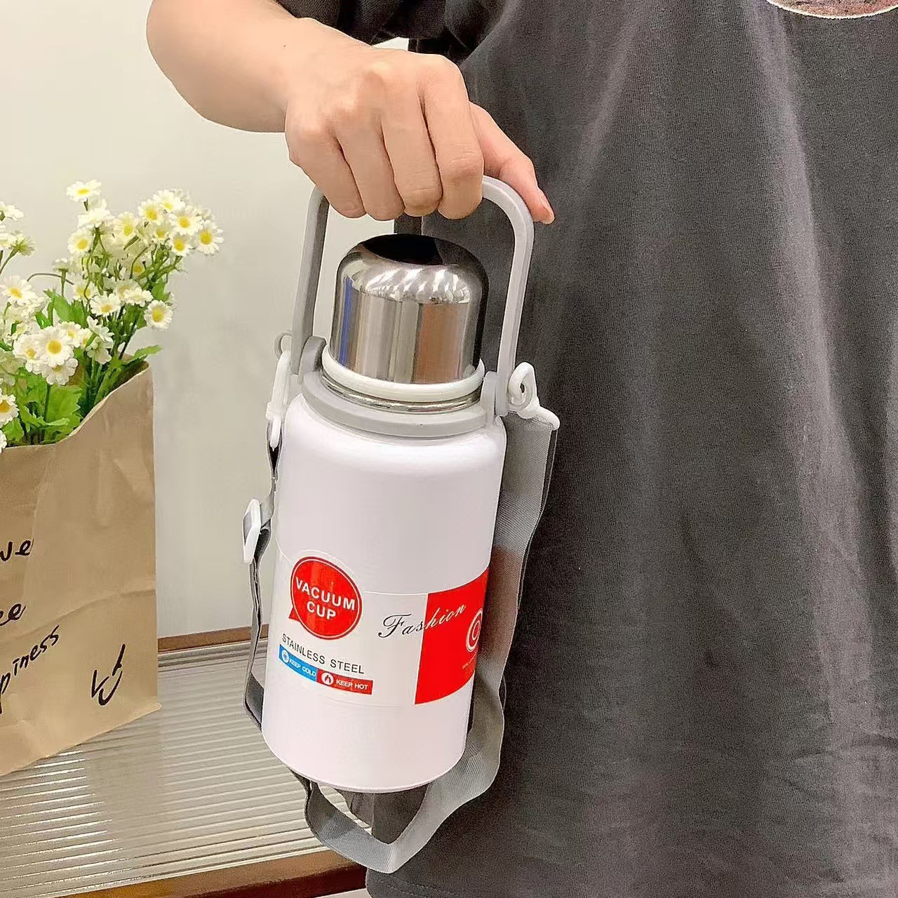 • 1200ml 골드 스틸 보온병 컵