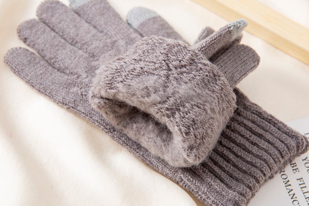 국경 간 가을과 겨울 장갑 남성과 여성의 기모 두꺼운 양모 미끄럼 방지 터치 스크린 라이딩 손가락 니트 따뜻한 두꺼운 장갑