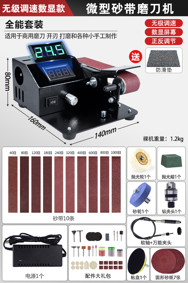 • [350W] 무단계 속도 조절 + 디지털 디스플레이 화면 [블레이드 + 샤프닝 + 폴리싱] (연삭 휠 + 폴리싱 휠 + 폴리싱 왁스 + 샌딩 벨트 10개)