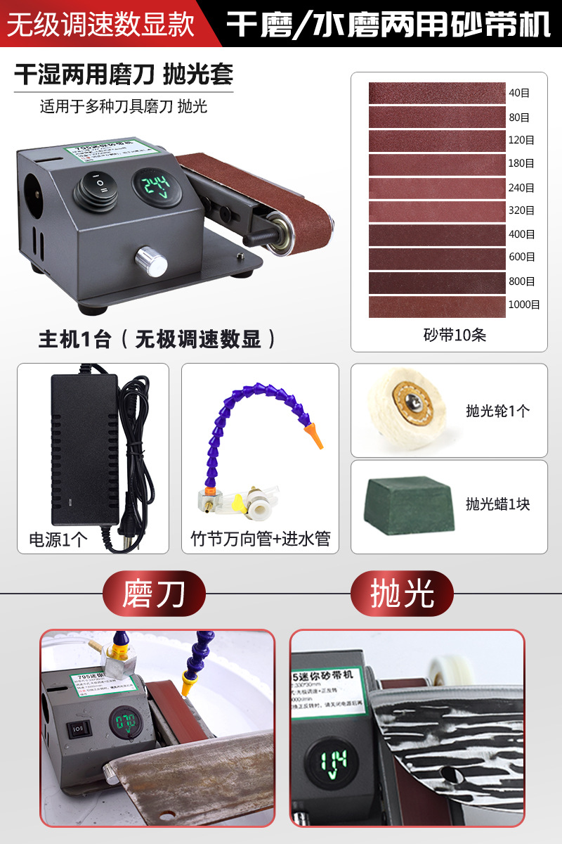 • 무단 속도 조절 디지털 디스플레이 모델 [습식 및 건식 사용] (수분쇄 액세서리 + 연마 벨트 10개)
