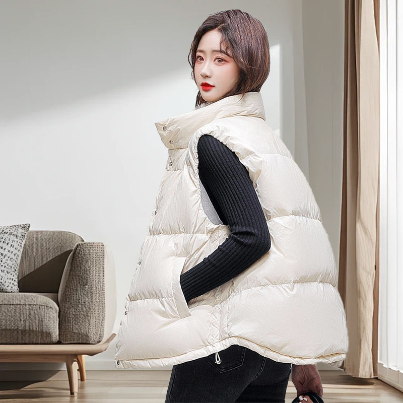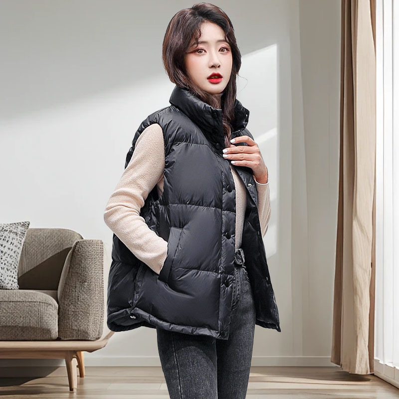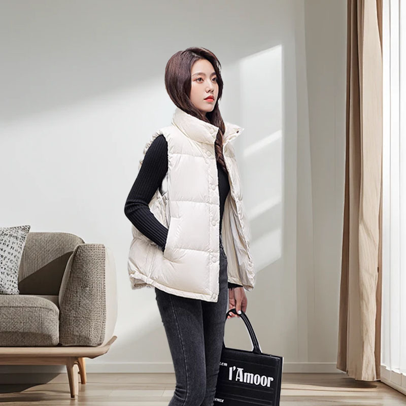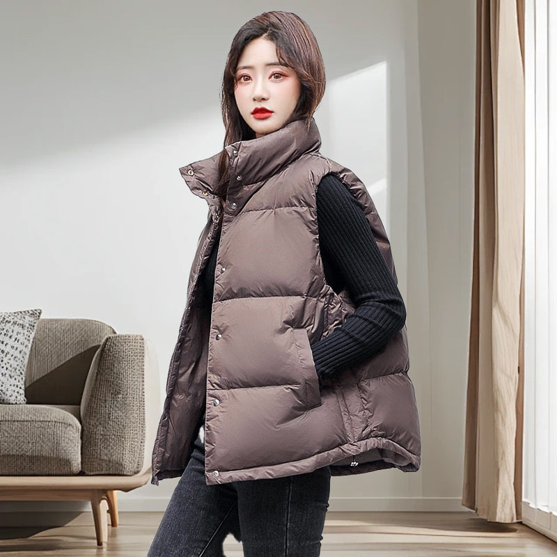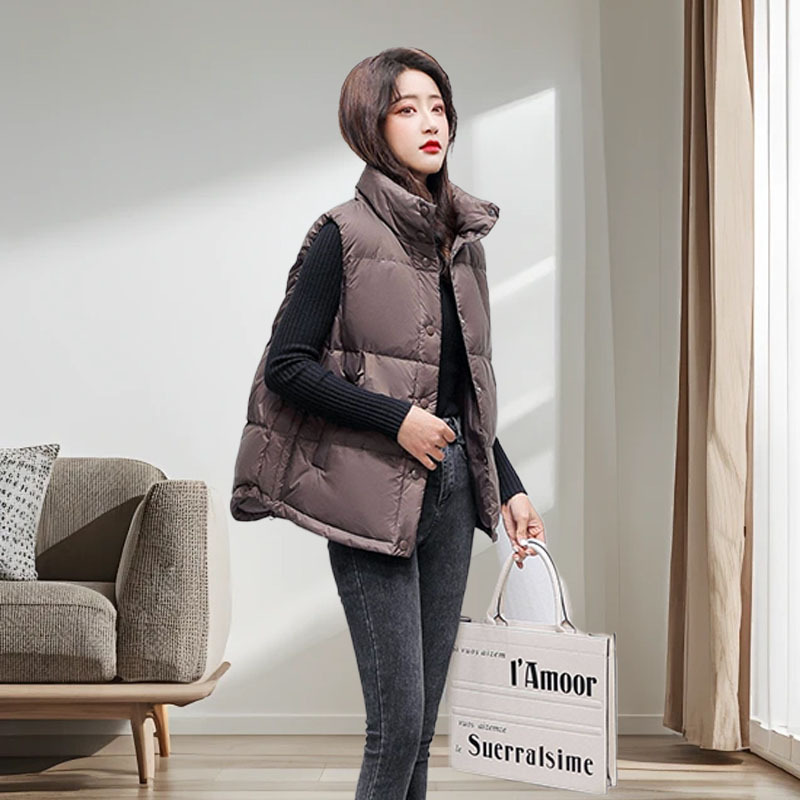 여성용 다운 조끼 90 다운 스탠드 칼라 오리 다운 조끼 아우터웨어 하이 엔드 플랫 레이어드 라이트 라지 사이즈 새로운 스타일스토어 가기
