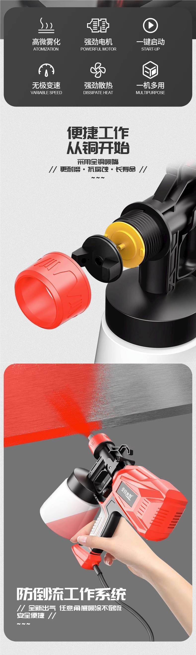유선 전기 페인트 스프레이 건 220v 작은 라텍스 페인트 스프레이 기계 가정용 고출력 분무 스프레이 건 스프레이