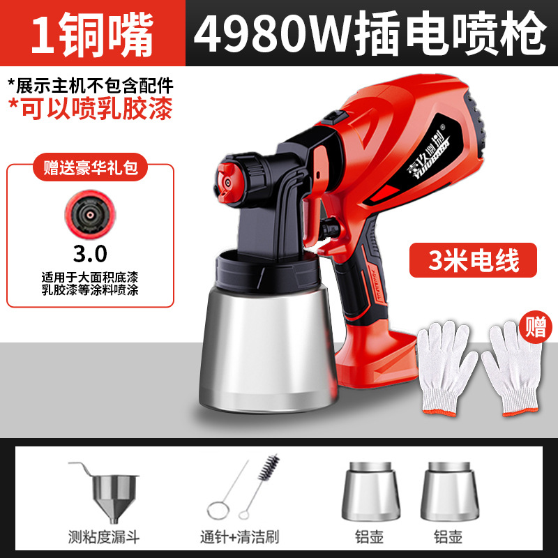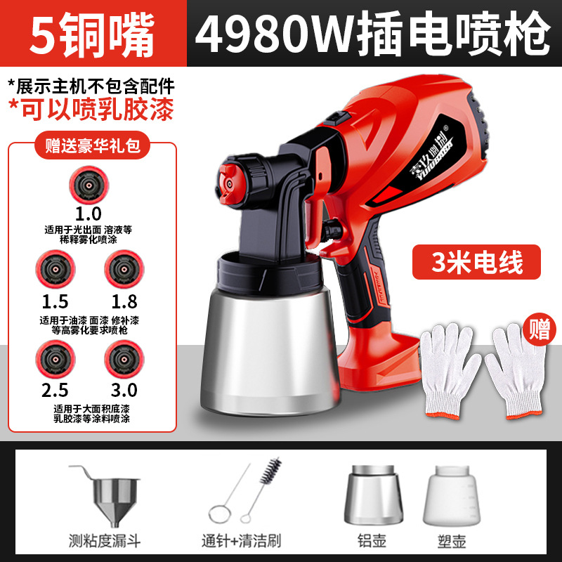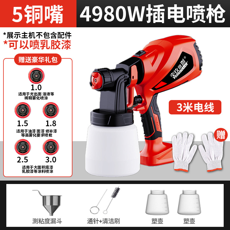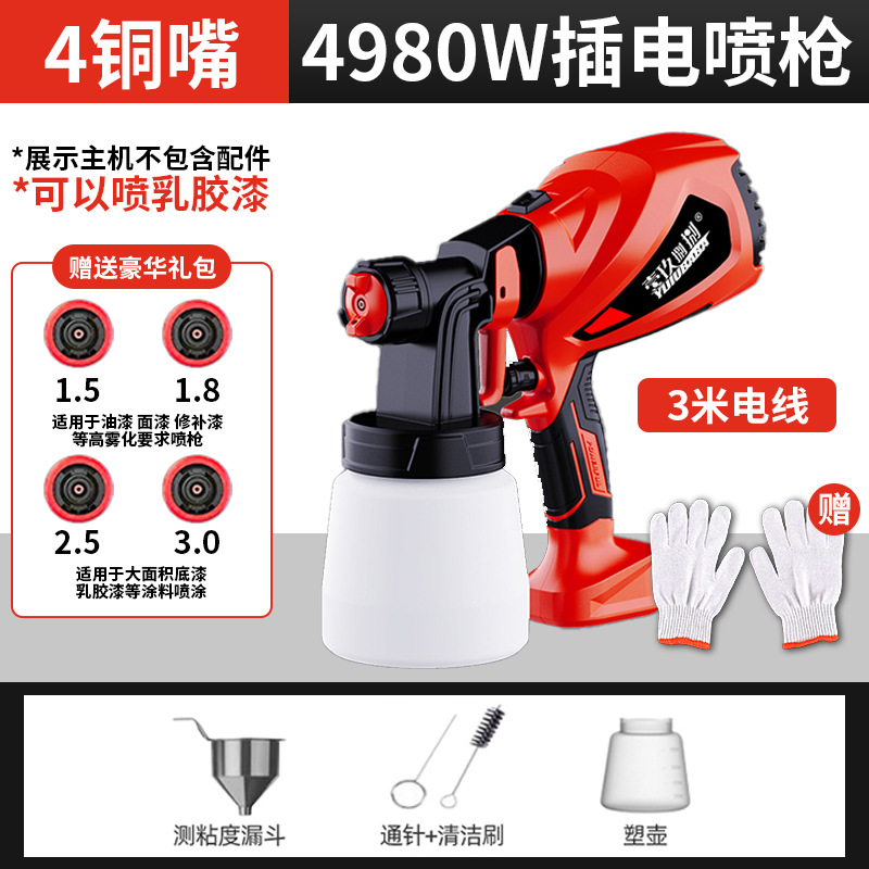 • 4980 전자 스프레이 건 [알루미늄 냄비 2개 + 구리 노즐 4개]는 라텍스 페인트를 뿌릴 수 있습니다.