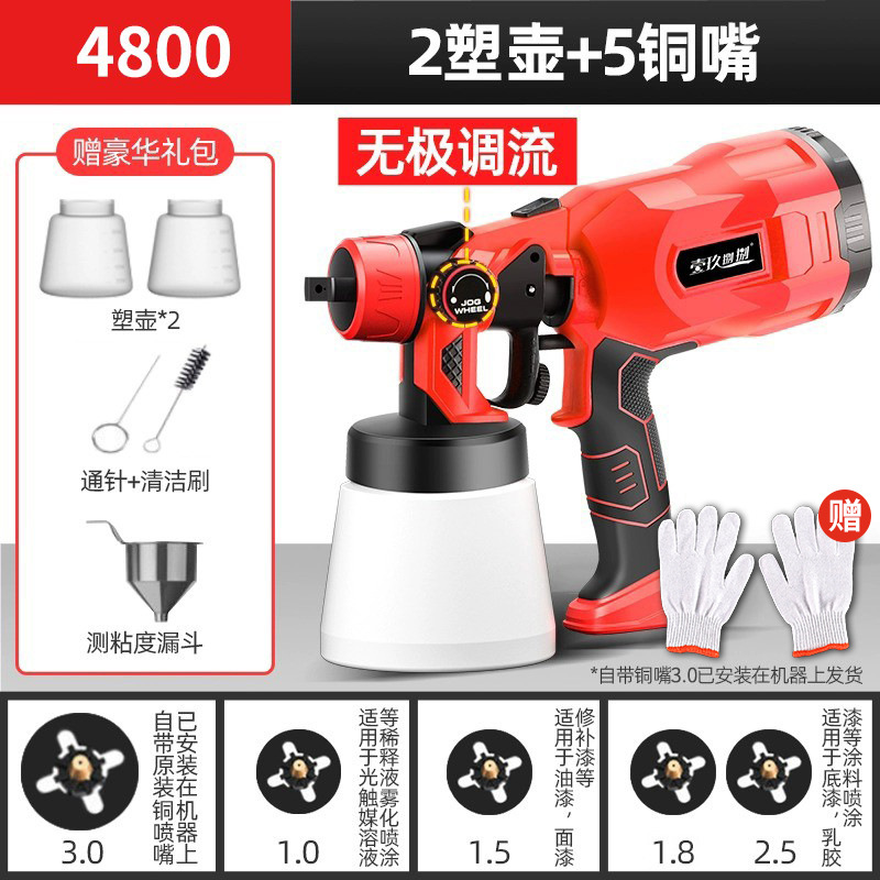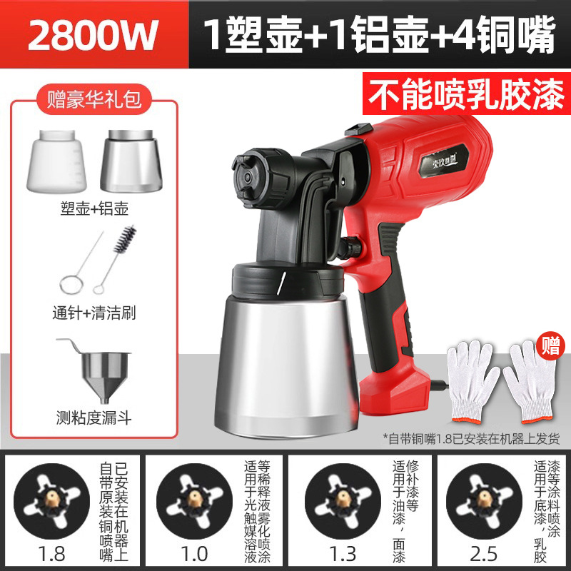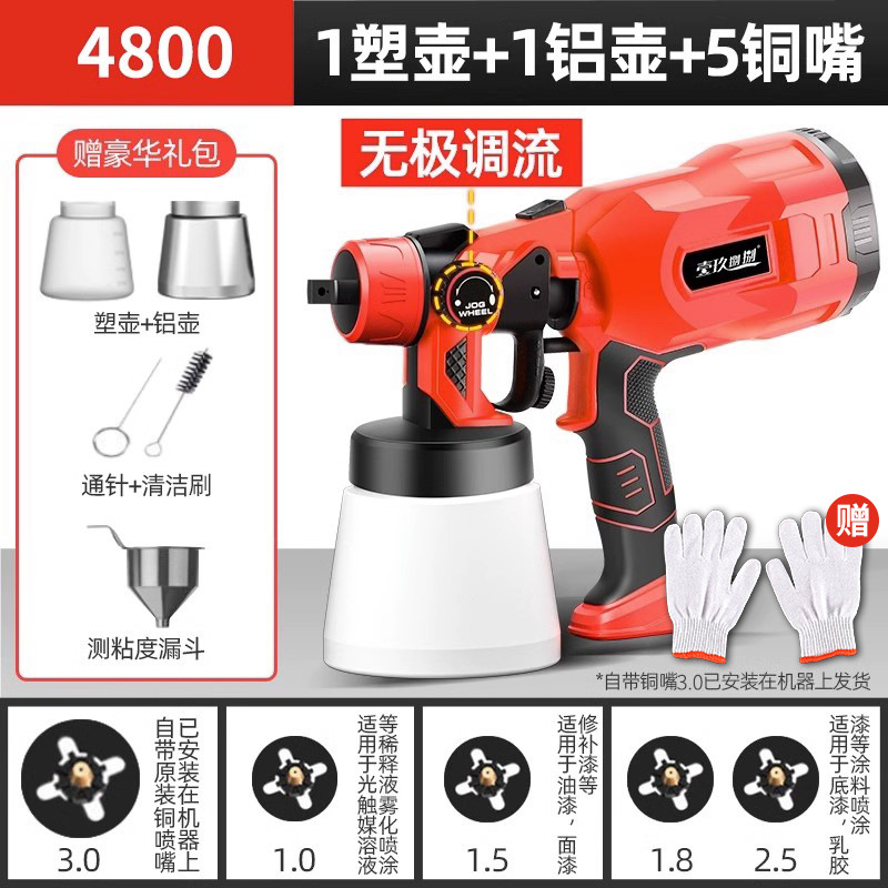 • 4800 전자 스프레이 건 [플라스틱 냄비 + 알루미늄 냄비 + 노즐 5개]는 라텍스 페인트를 뿌릴 수 있습니다.