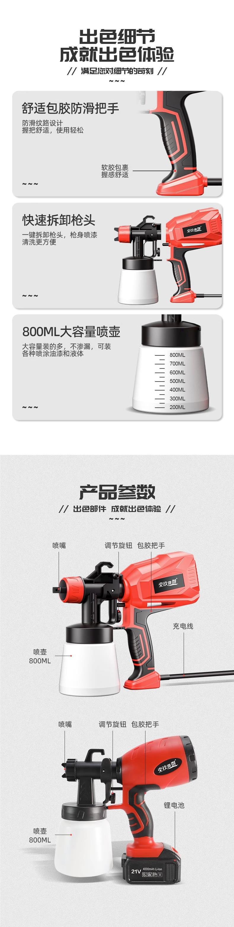 • 4800 전자 스프레이 건 [플라스틱 냄비 + 노즐 1개]은 라텍스 페인트를 뿌릴 수 있습니다.