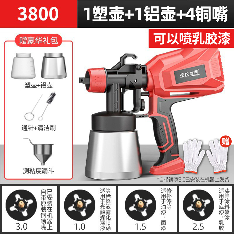 • 3800 전자 스프레이 건 [플라스틱 냄비 + 알루미늄 냄비 + 노즐 4개]는 라텍스 페인트를 뿌릴 수 있습니다.