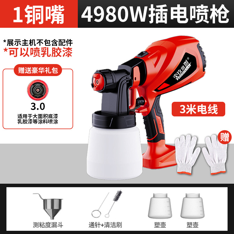 • 4980W 스프레이 페인트 건 [플라스틱 냄비 + 구리 노즐 1개]은 라텍스 페인트를 뿌릴 수 있습니다.