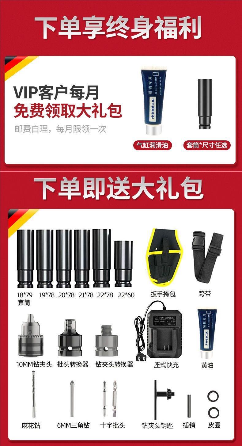 독일 Derston 전기 렌치 브러시리스 리튬 배터리 높은 토크 높은 전원 앵글 랙 풋 프레임 작업자 자동 수리 에어 건스토어 가기