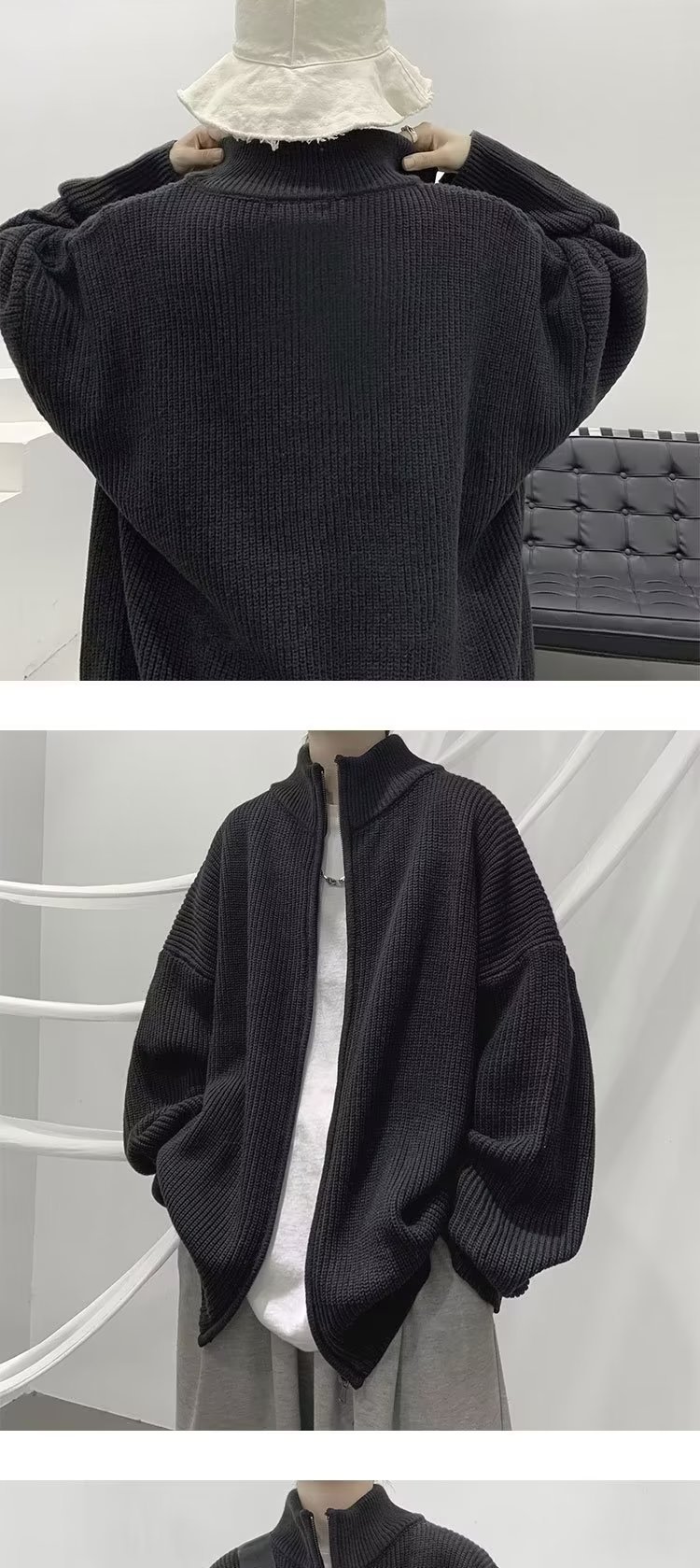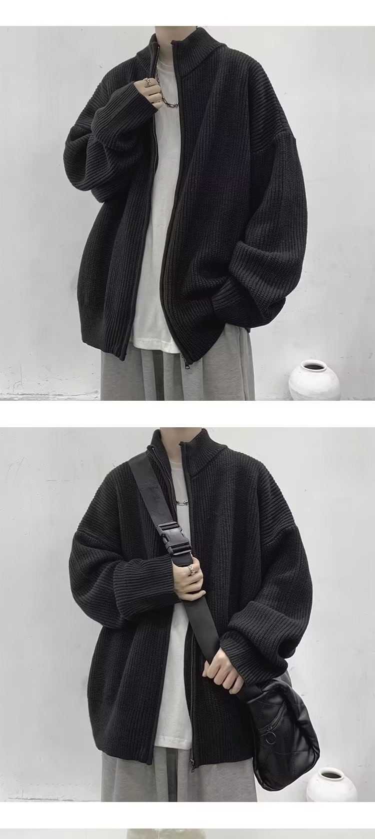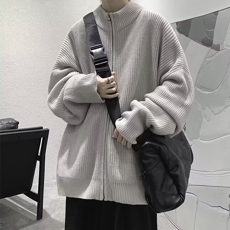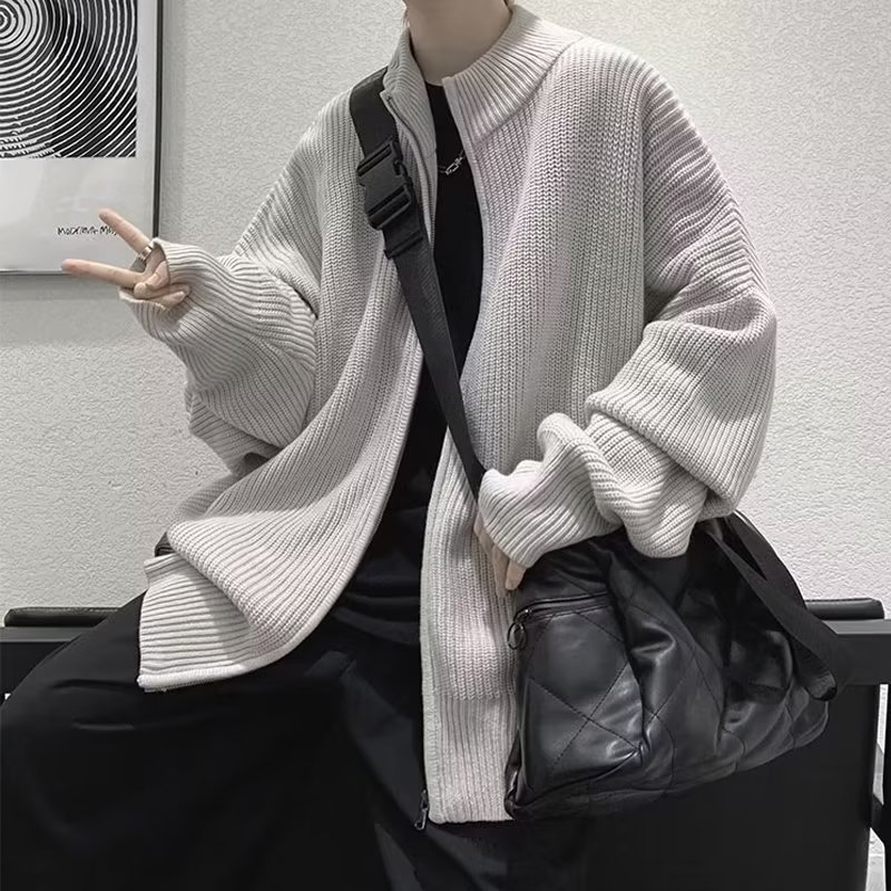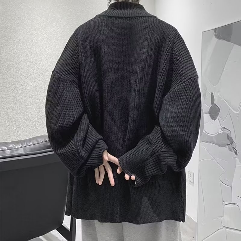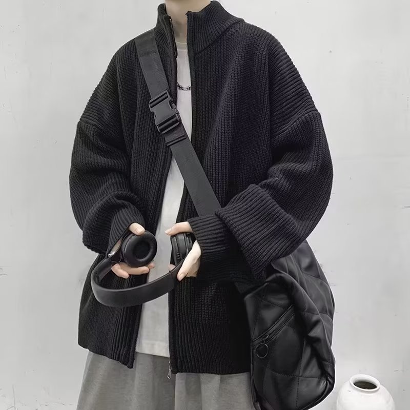 가을 카디건 스웨터 남성 학생 느슨한 게으른 스타일 스웨터 유행 미국 레트로 하프 칼라 스웨터 재킷스토어 가기