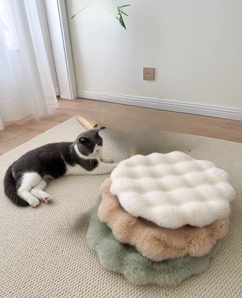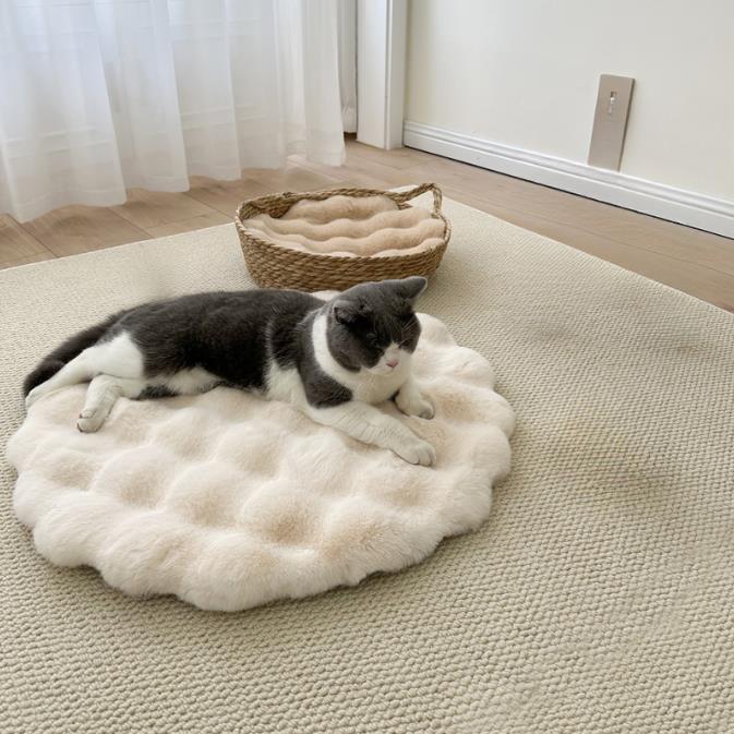 모조 토끼 플러시 고양이 둥지 라운드 매트 개 둥지 매트 겨울 따뜻한 애완 동물 둥지 매트 새끼 고양이 잠자는 매트리스