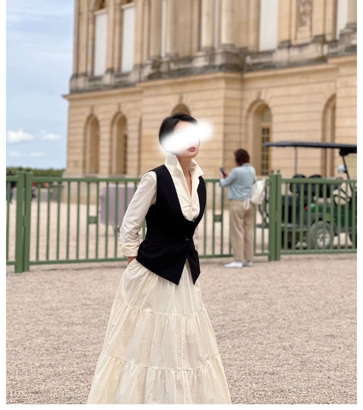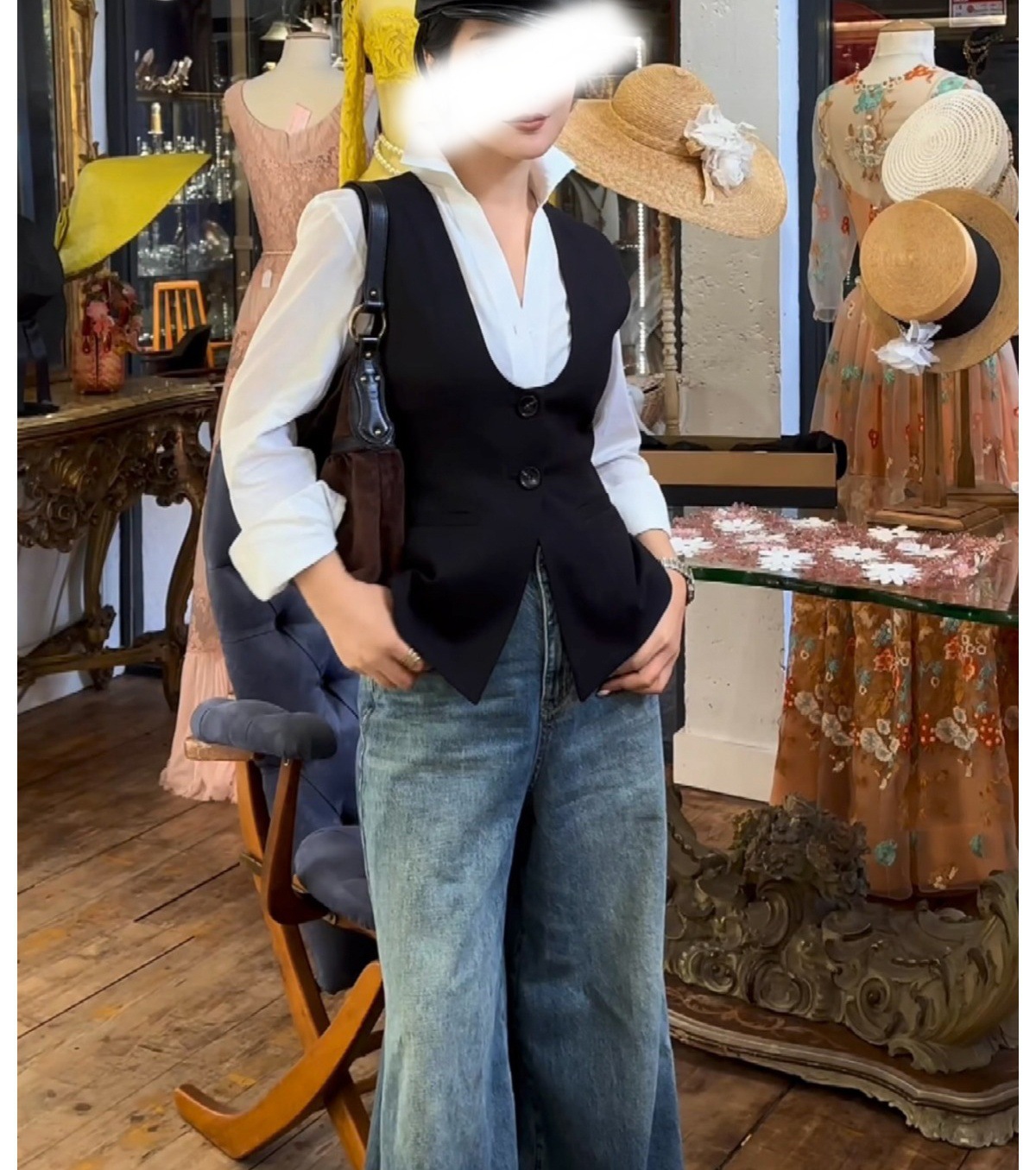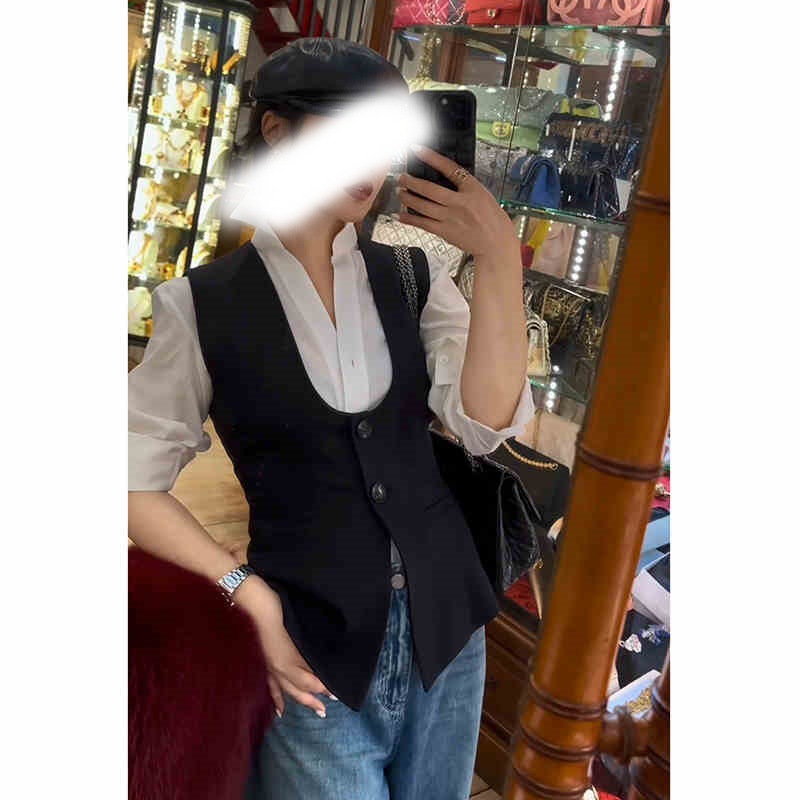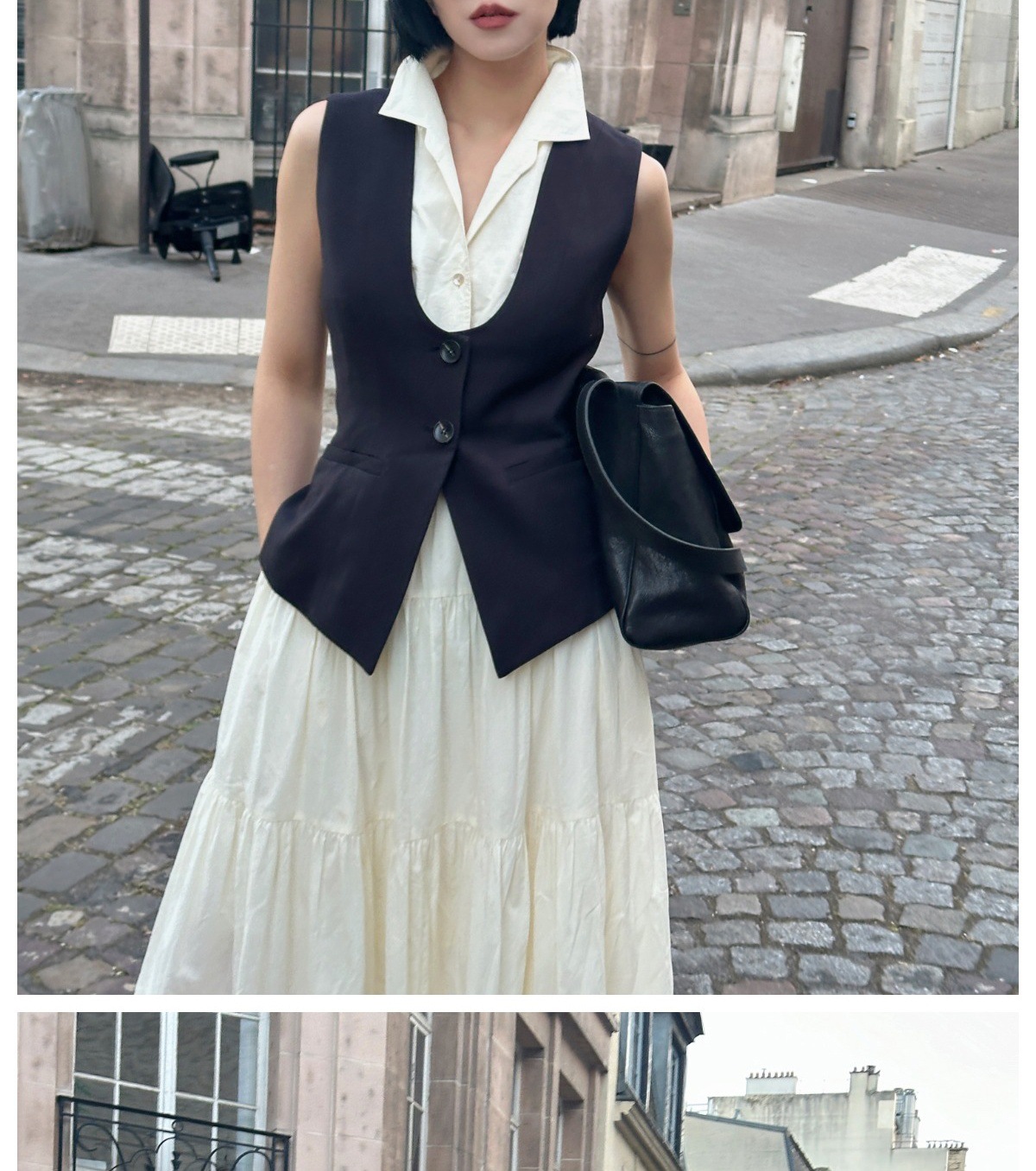 올드 Qian 스타일 U 칼라 세트 조끼 여성 타이트 허리 슬림 핏 민소매 스태킹 웨이스트 코트
