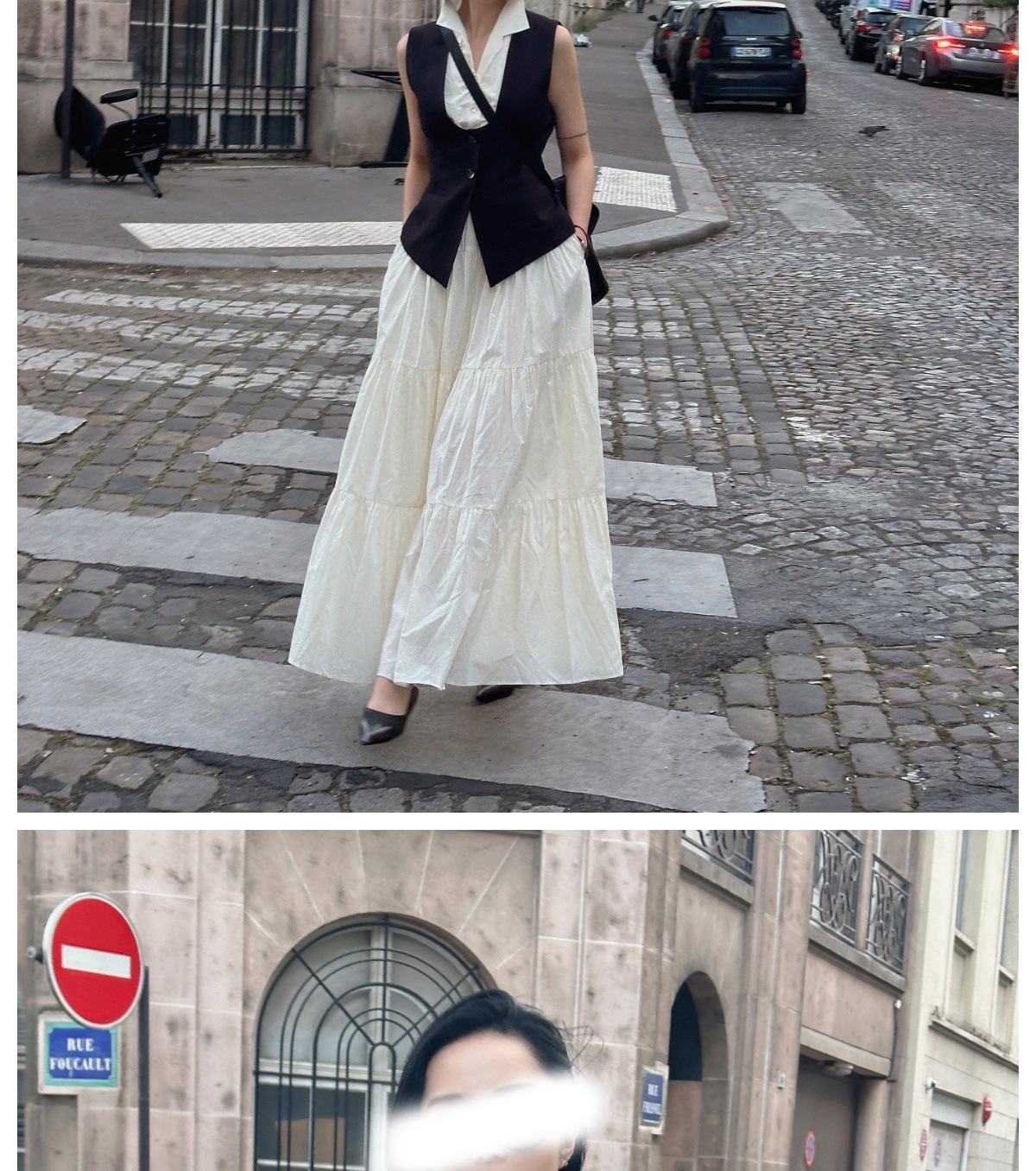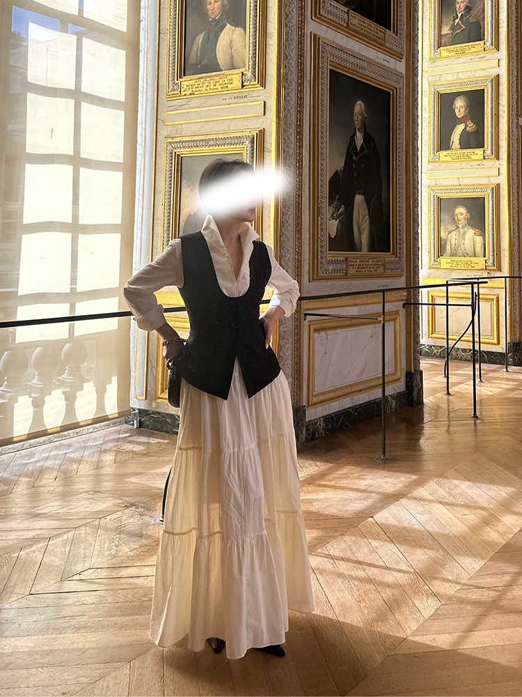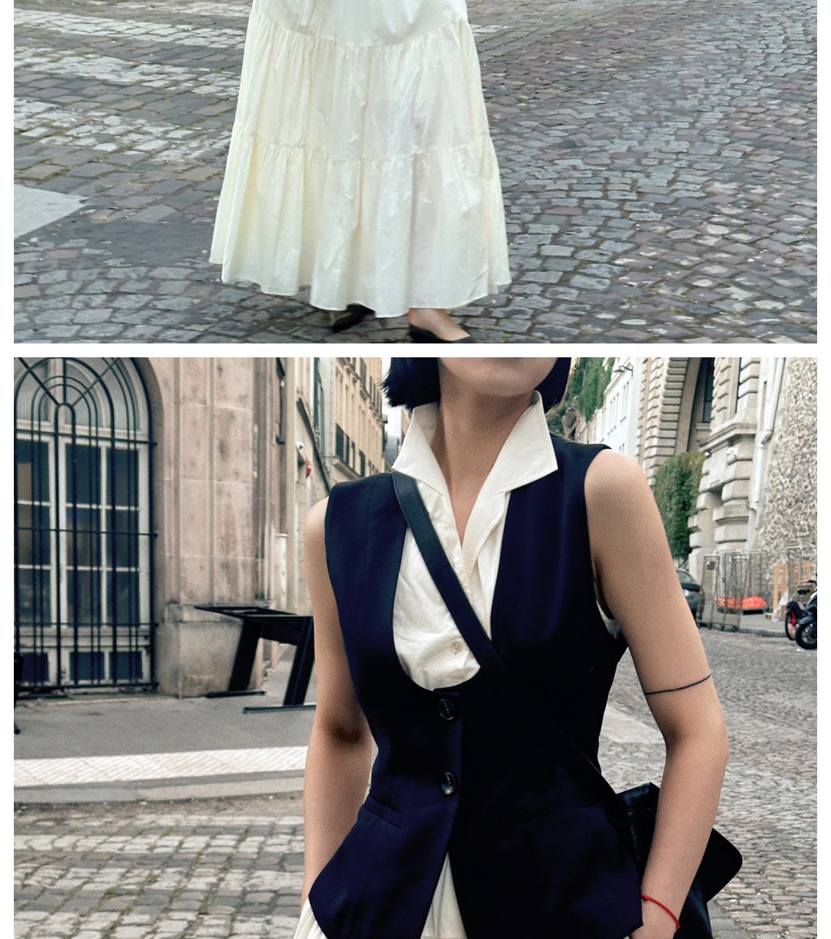 올드 Qian 스타일 U 칼라 세트 조끼 여성 타이트 허리 슬림 핏 민소매 스태킹 웨이스트 코트