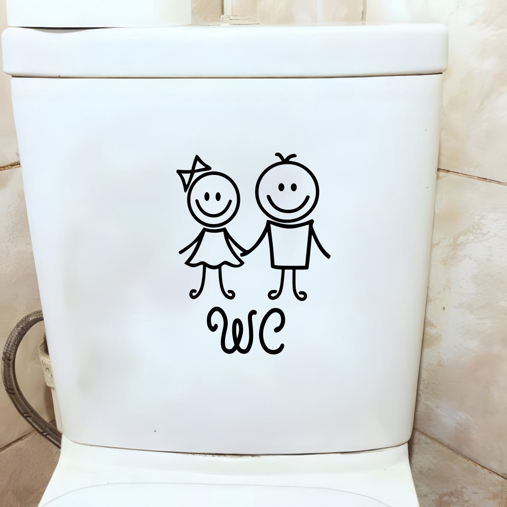 아마존 만화 작은 사람들 WC 벽 스티커 화장실 화장실 성격 장식 벽지 자기 접착 도매 대외 무역스토어 가기