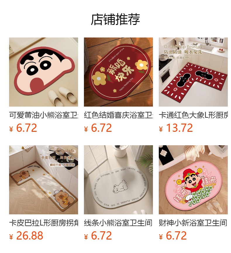 Crayon Xiaoxin Diatom 진흙 욕실 화장실 문 흡수 미끄럼 방지 더러운 바닥 매트 만화 입구 주방 발 매트스토어 가기