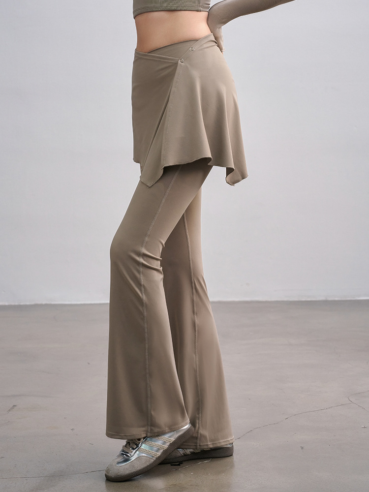 여성용 요가 퀼로트 2021 새로운 가을, 겨울 패션 투피스 세트 하이 웨이스트 약간 플레어 슬리밍 엉덩이 덮는 스포츠 피트니스 바지