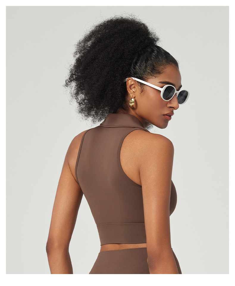 가슴 패드 통합 컵이 달린 옷깃 스포츠 조끼 여자 슬림핏 슬리밍 달리기 통기성 민소매 요가 피트니스 탑스토어 가기