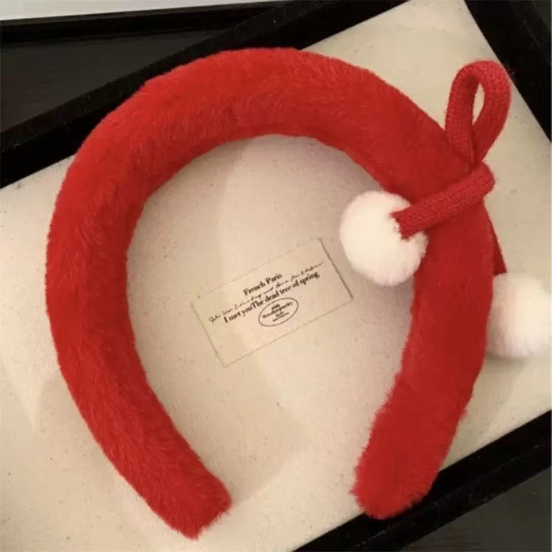 새해 크리스마스 귀여운 바람 활 봉제 머리 후프 여성의 달콤한 머리 반지 높은 두개 최고 가을 및 겨울 분위기 헤어 액세서리스토어 가기