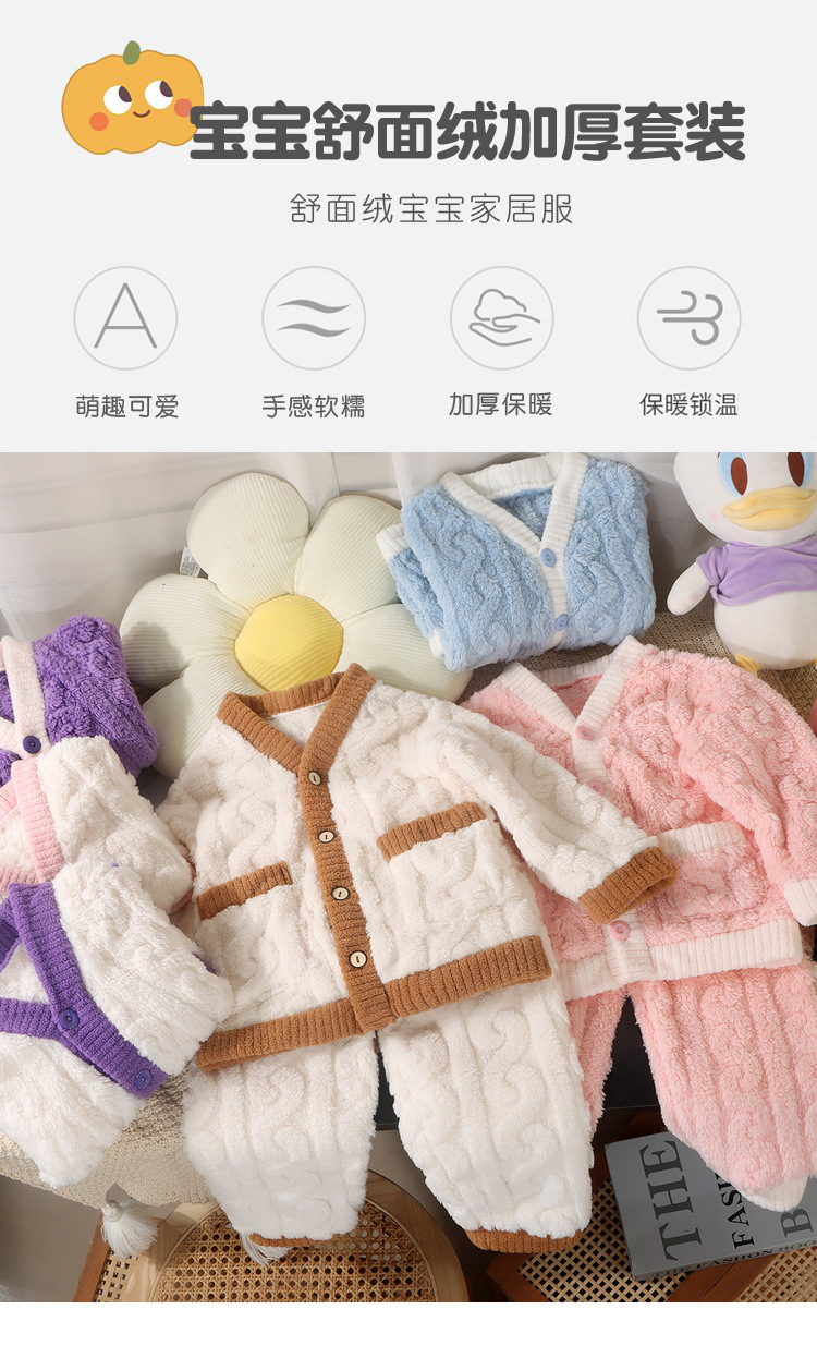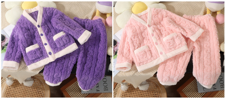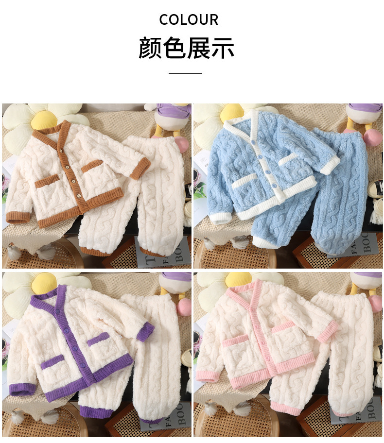 어린이 잠옷 가을과 겨울 플란넬 산호 양털 어린이 카디건 세트 소년 기모 두꺼운 한국식 홈 옷스토어 가기