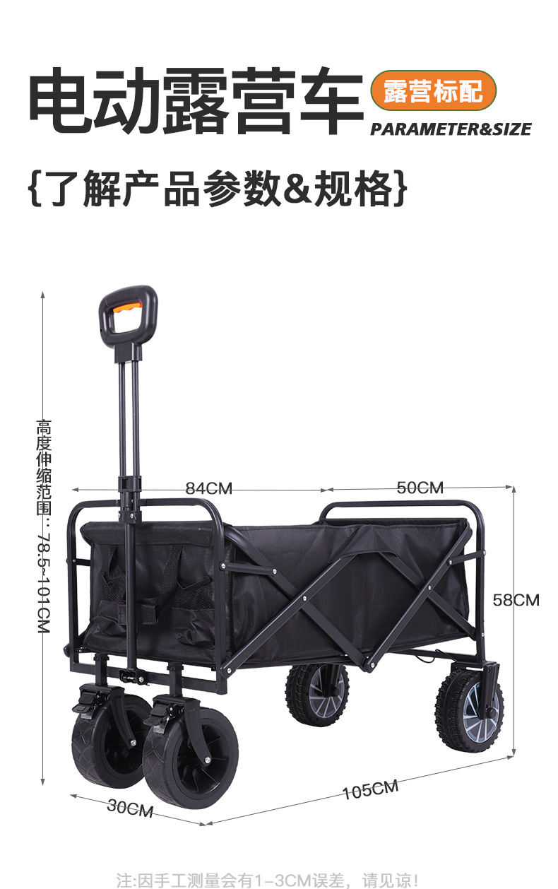 야외 전기 캠핑 트롤리 접히는 피크닉 트롤리 캠핑 트롤리 테이블 트롤리 캠프 트레일러