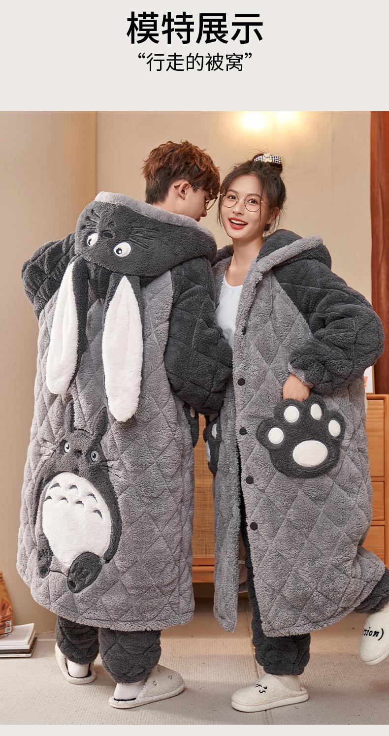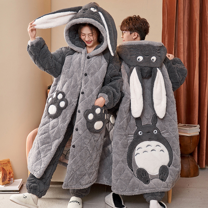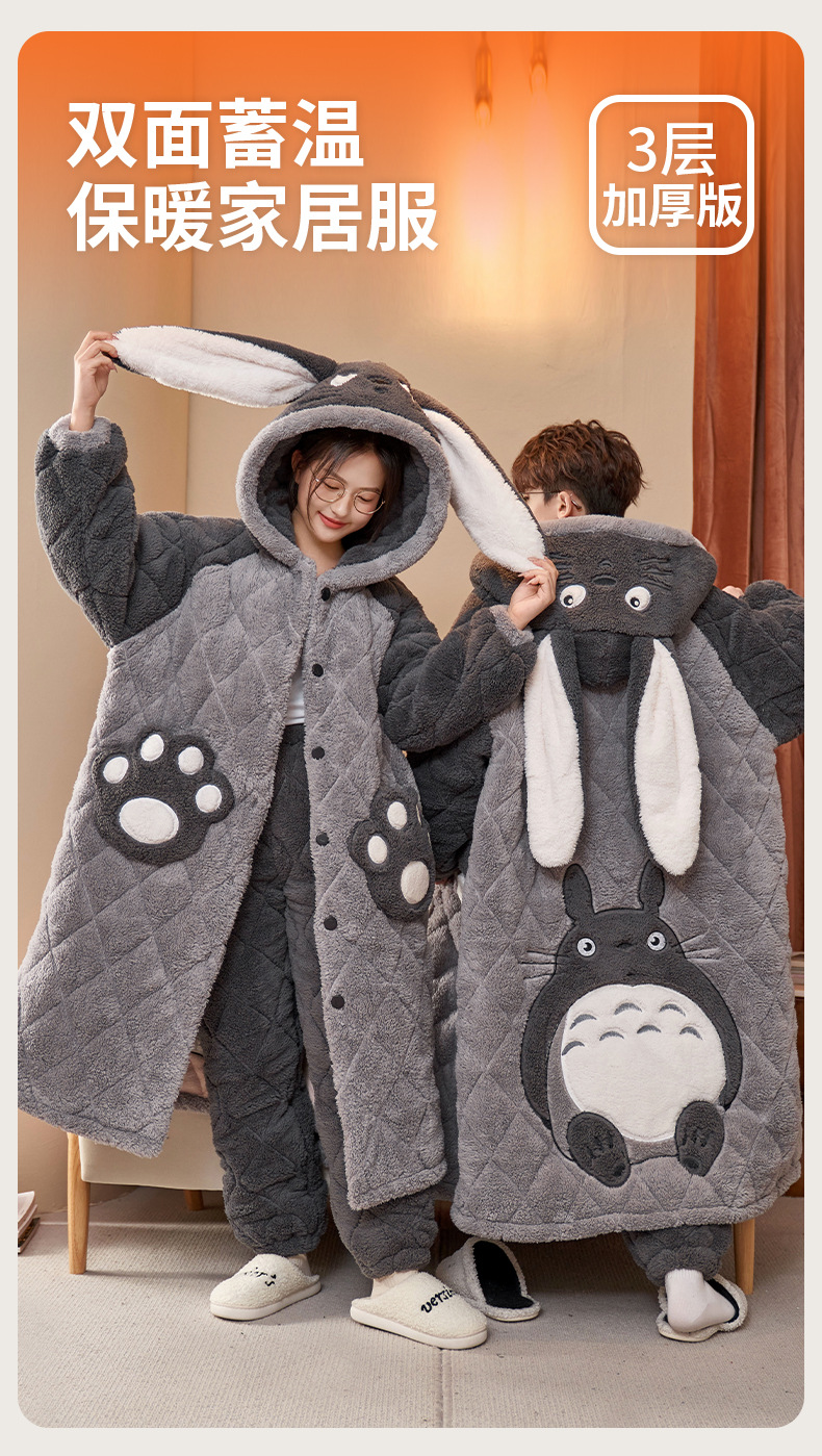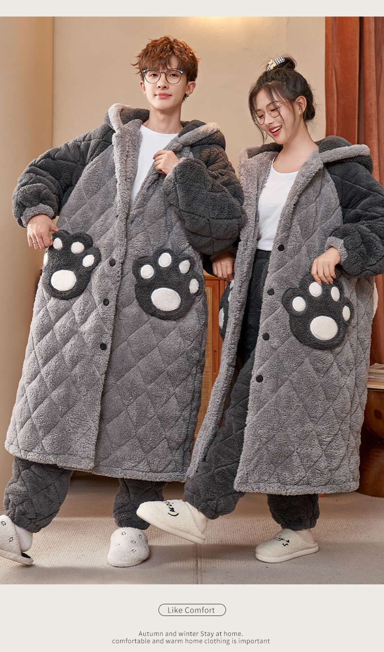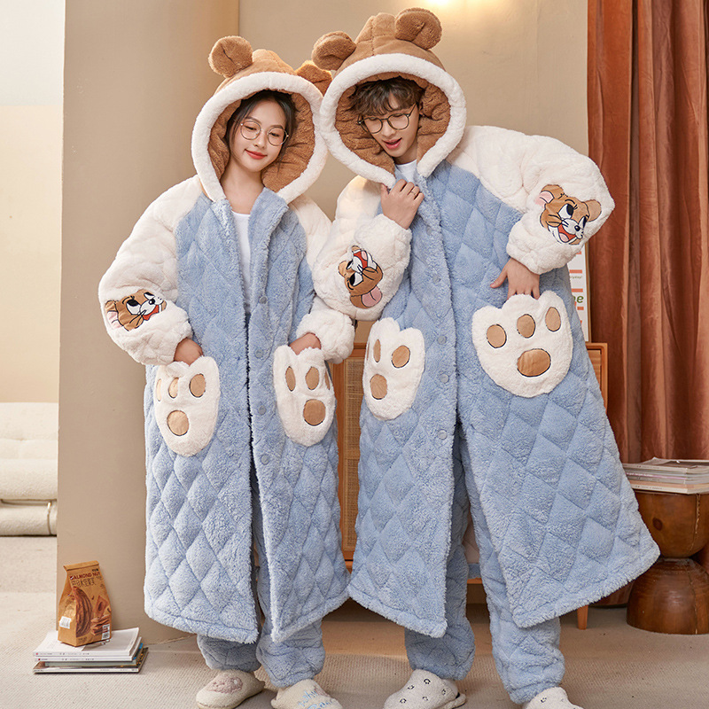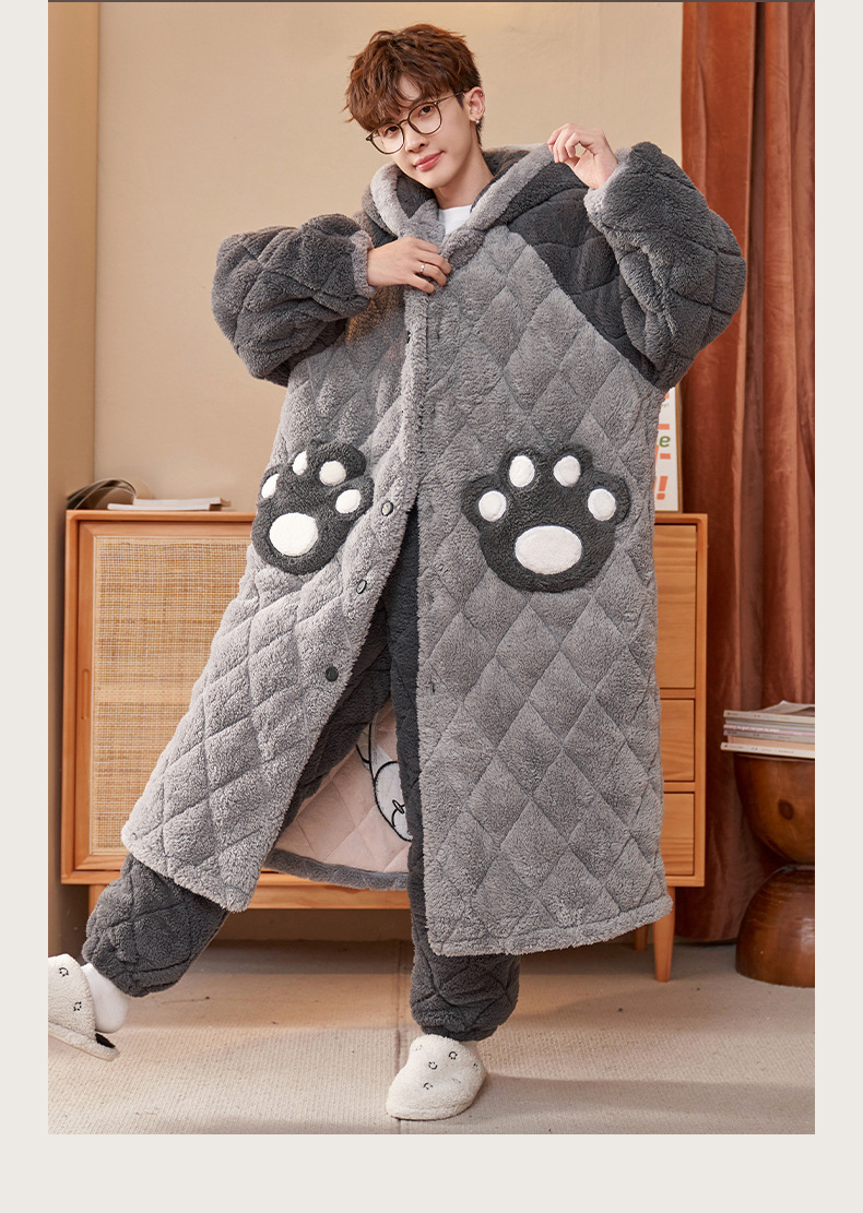 가을과 겨울 남자 잠옷 3 층 코튼 기모 두꺼운 산호 양털 만화 긴 로브 세트 청소년 홈 옷스토어 가기