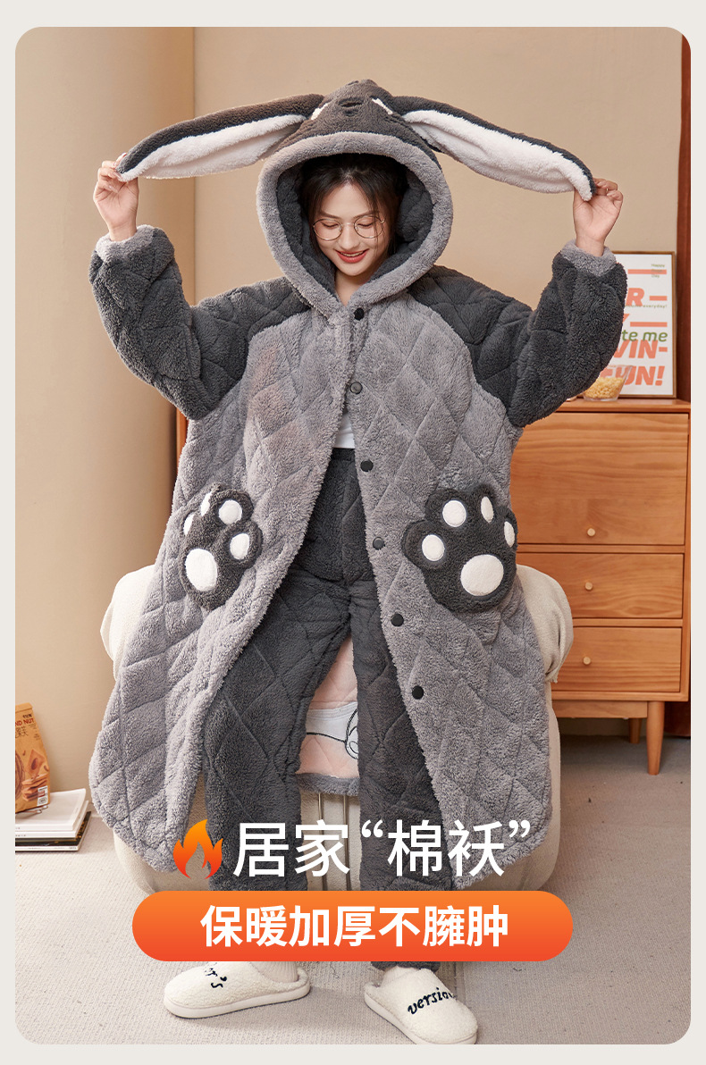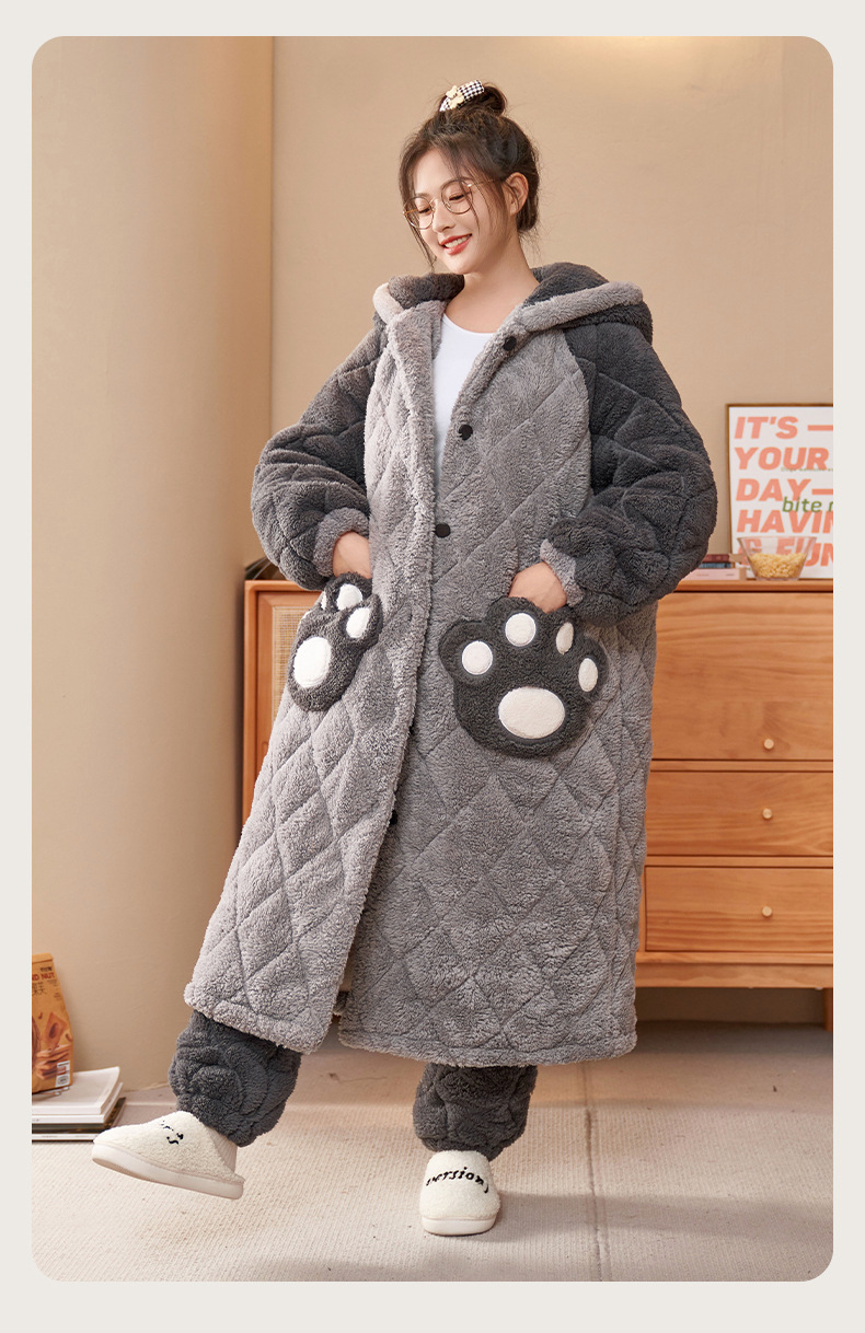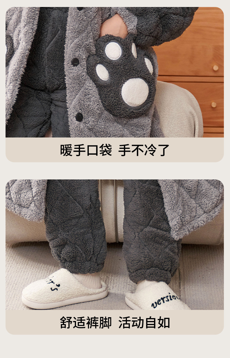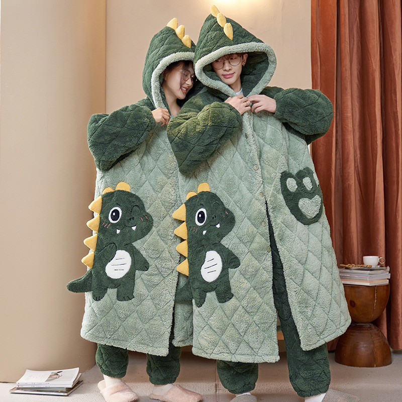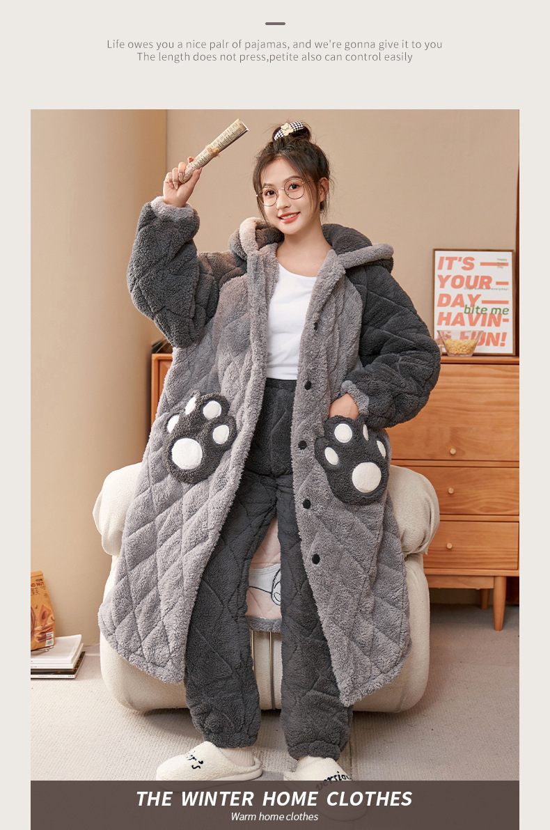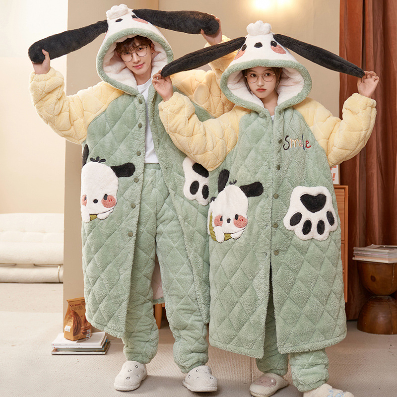 가을과 겨울 남자 잠옷 3 층 코튼 기모 두꺼운 산호 양털 만화 긴 로브 세트 청소년 홈 옷스토어 가기