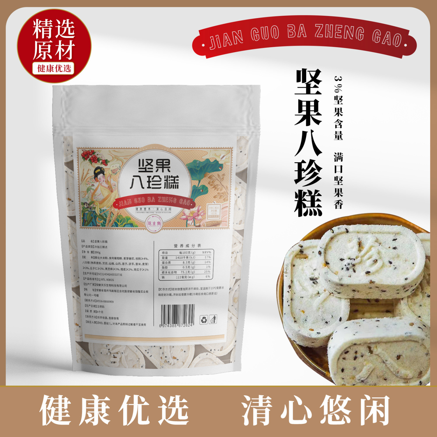 견과류, 복령, 팔진과자, 무설탕 식사대용, 도매 아침과자, 간식, 건강식품, 개별 포장