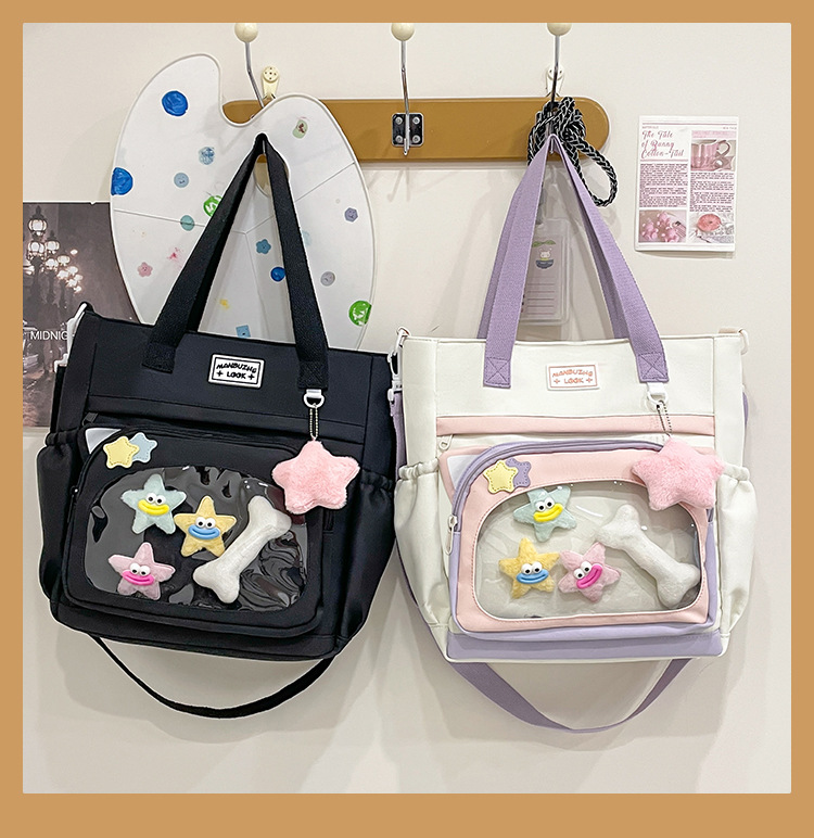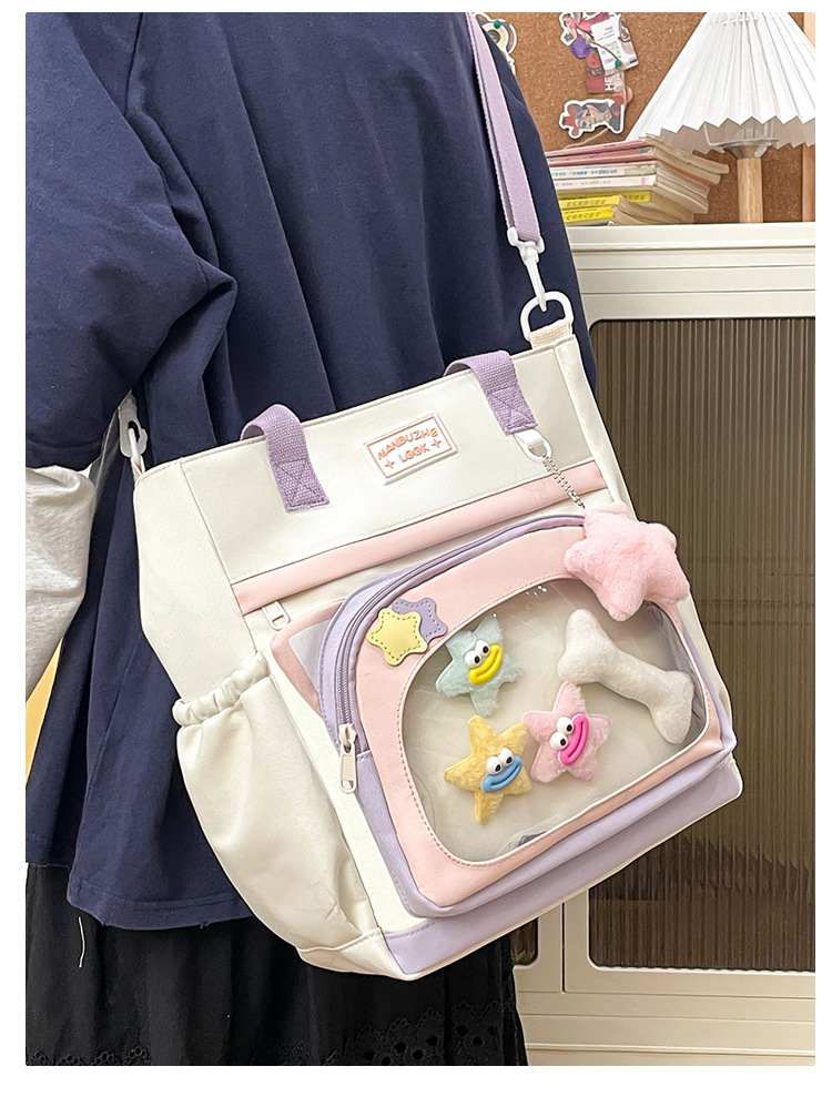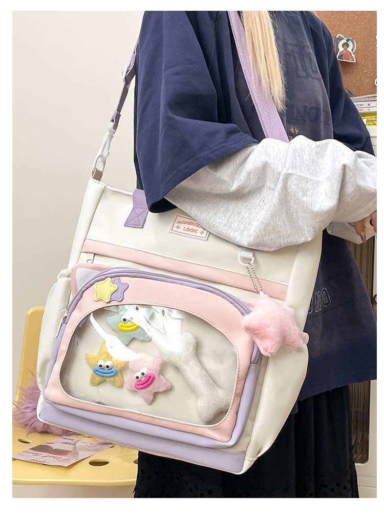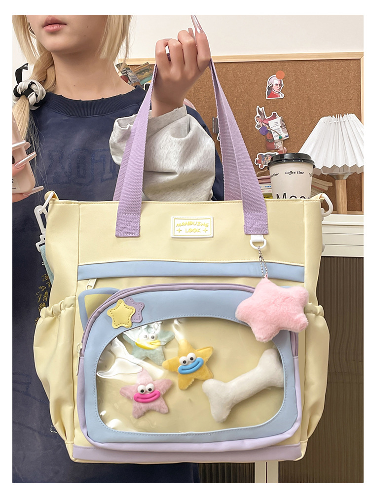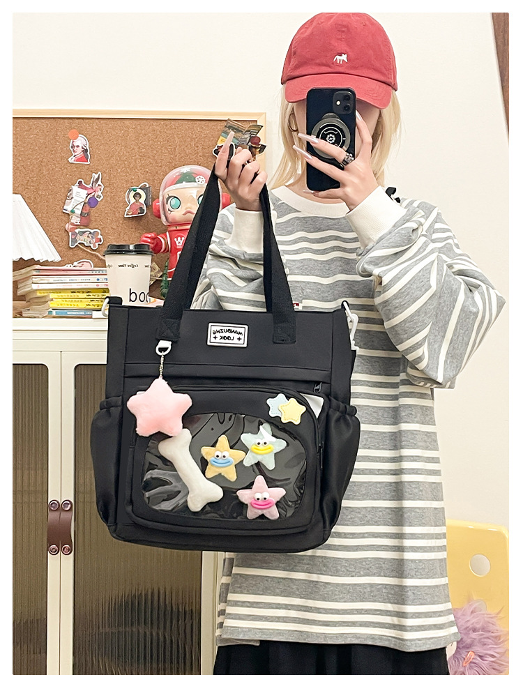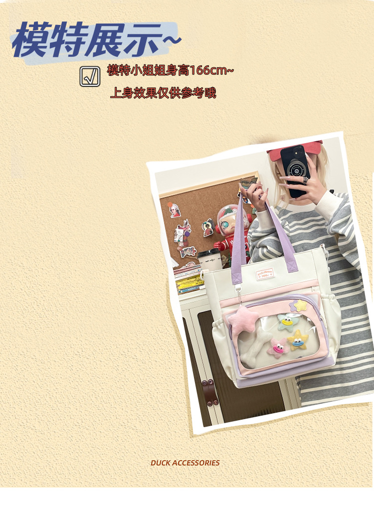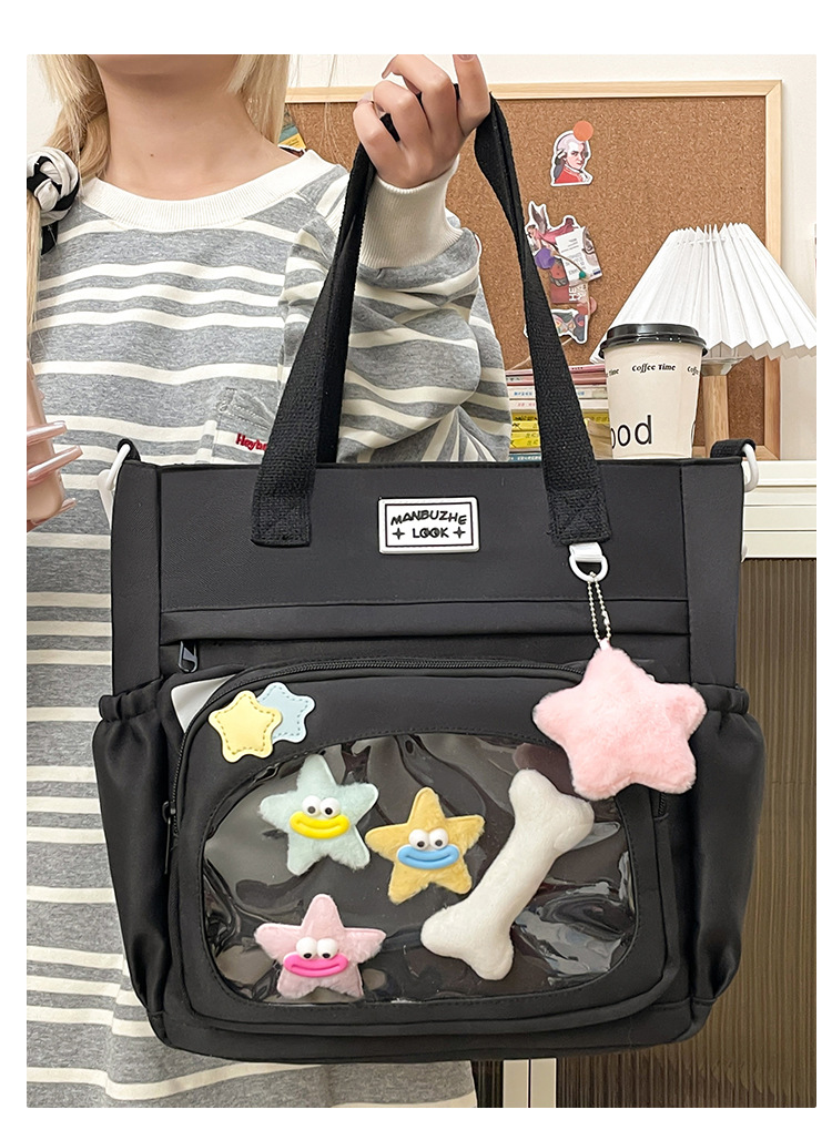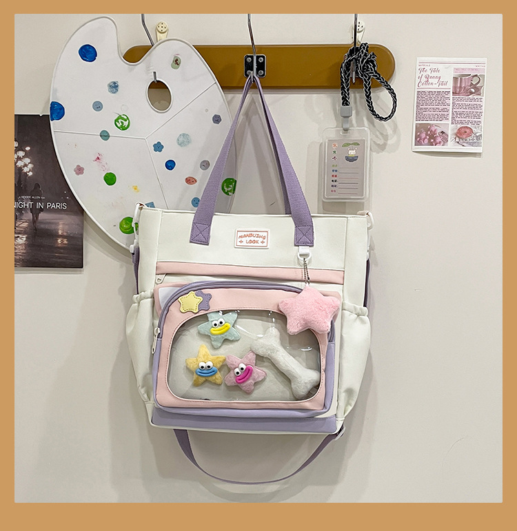 아카데미 스타일 올 매치 간단한 대용량 토트 백 여성 투명 어깨 가방 통근 통증 가방 학생 크로스 바디 백