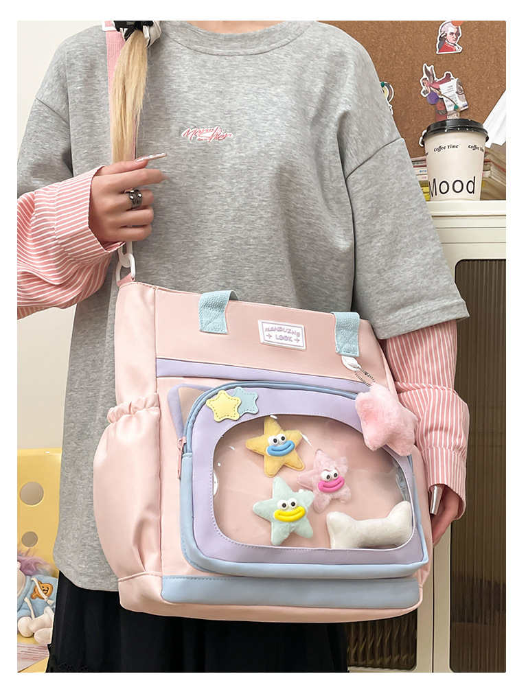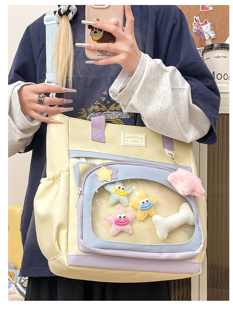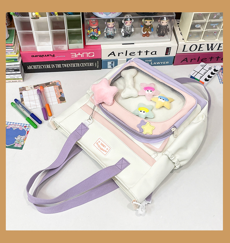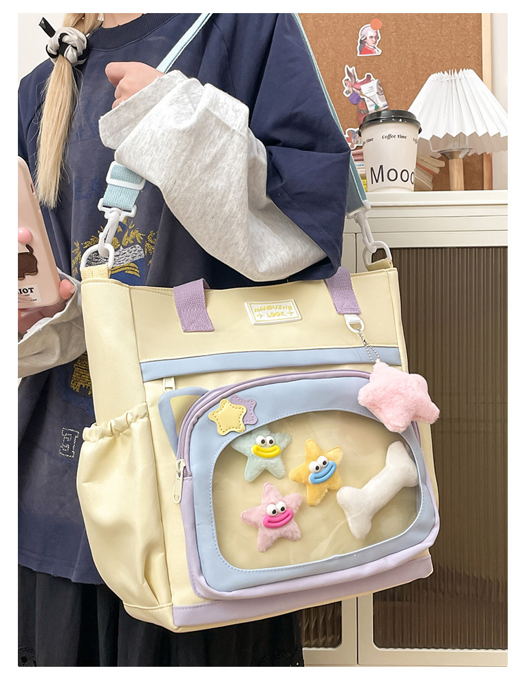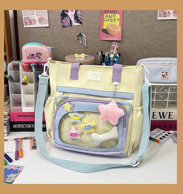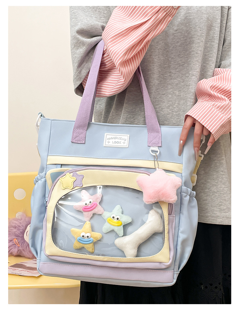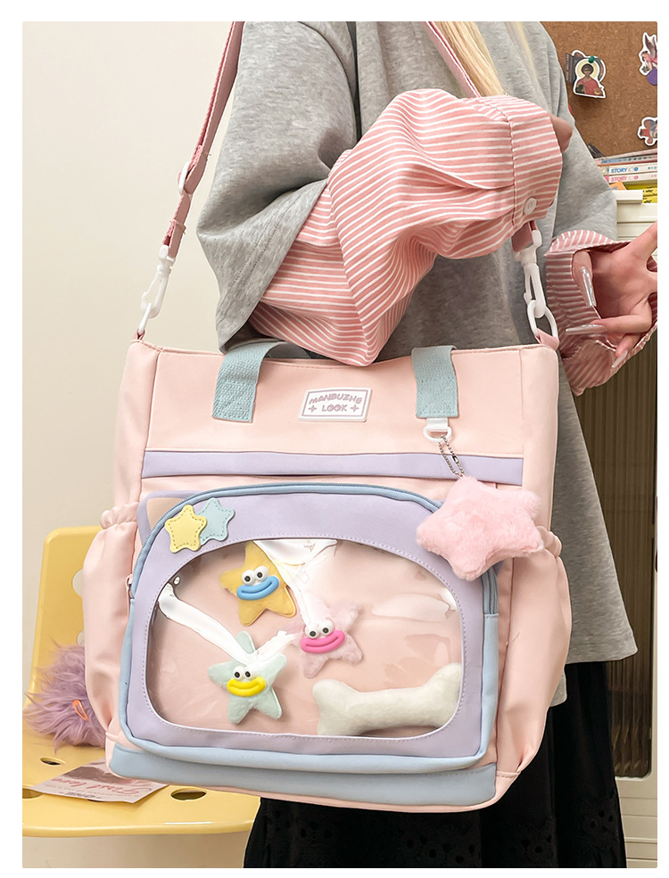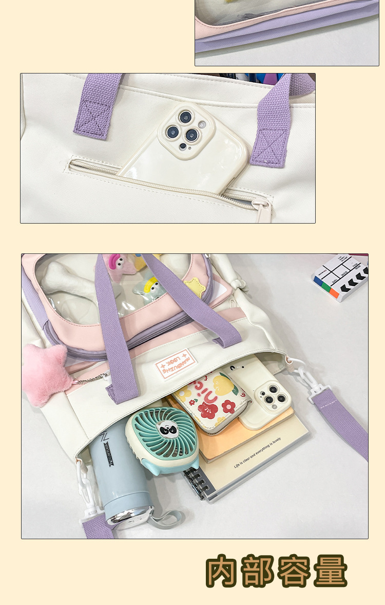 아카데미 스타일 올 매치 간단한 대용량 토트 백 여성 투명 어깨 가방 통근 통증 가방 학생 크로스 바디 백