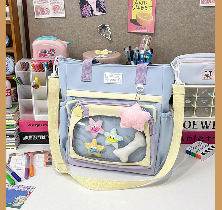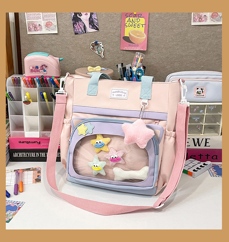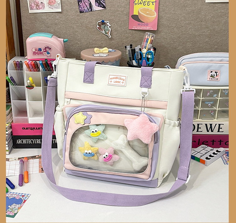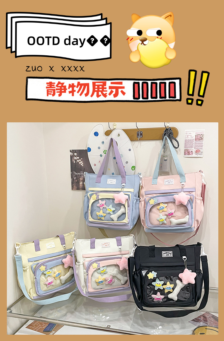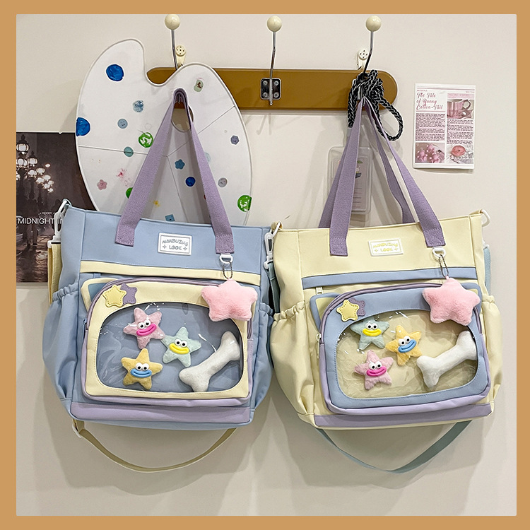 아카데미 스타일 올 매치 간단한 대용량 토트 백 여성 투명 어깨 가방 통근 통증 가방 학생 크로스 바디 백스토어 가기
