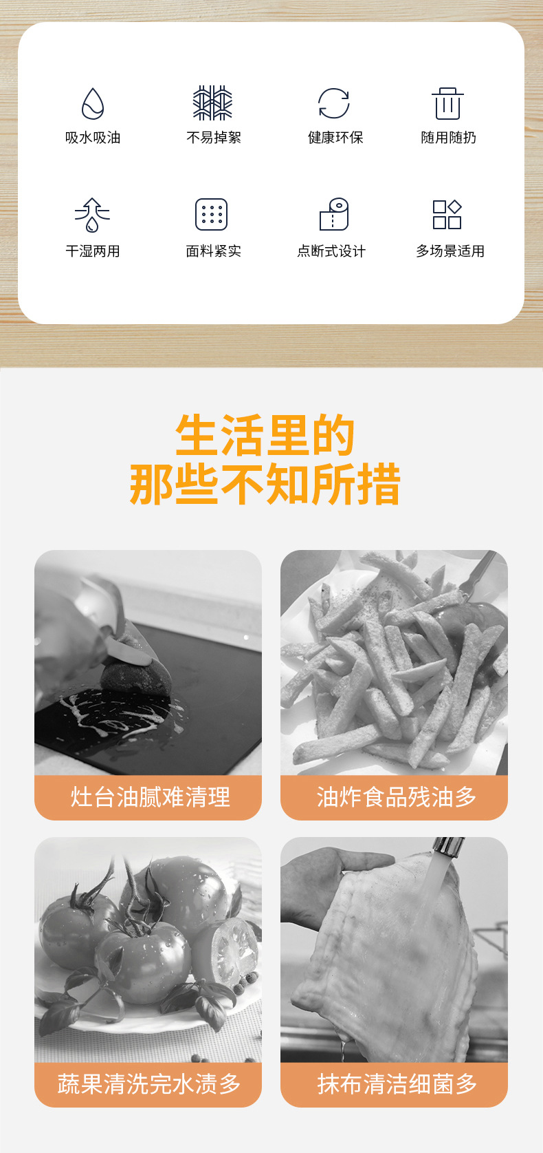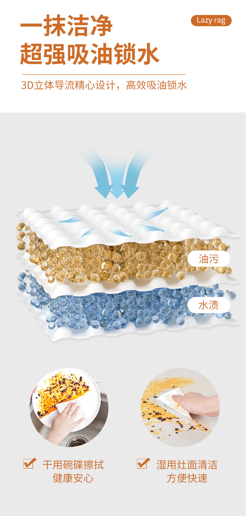 부엌 처분할 수 있는 게으른 헝겊 두꺼운 세척 가능한 인쇄 습식 및 건조한 이중 사용 청소 그릇 세척용 기름 없는 청소 천