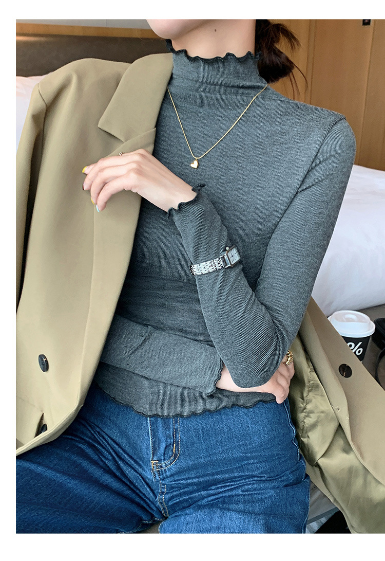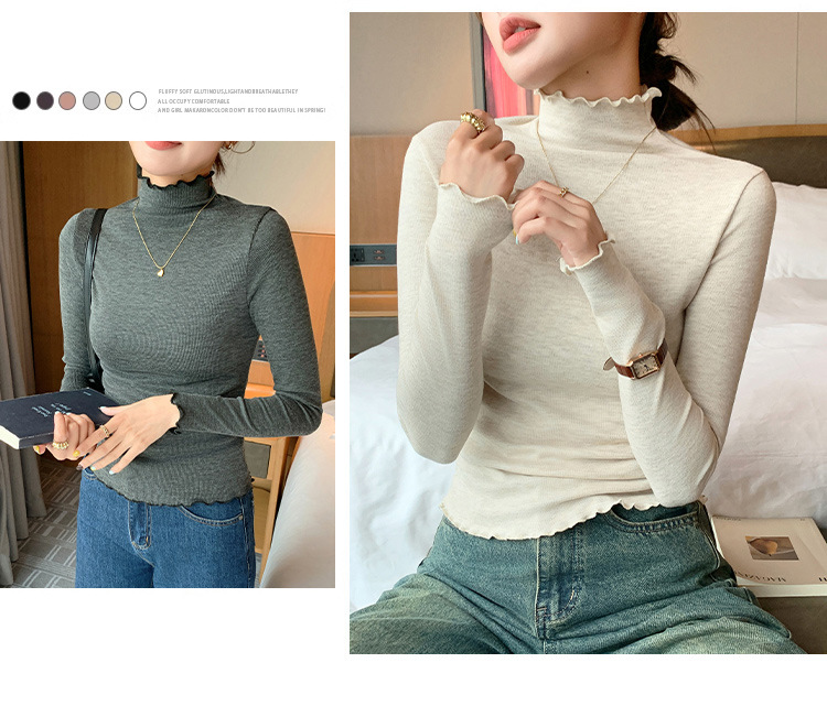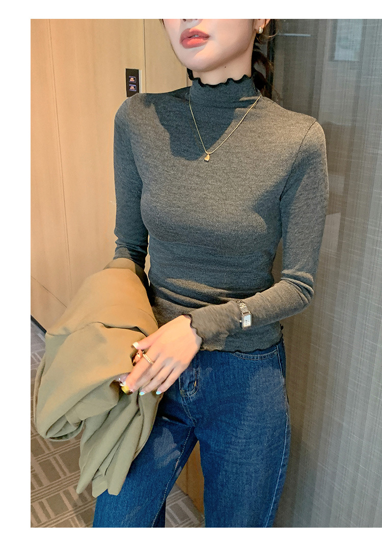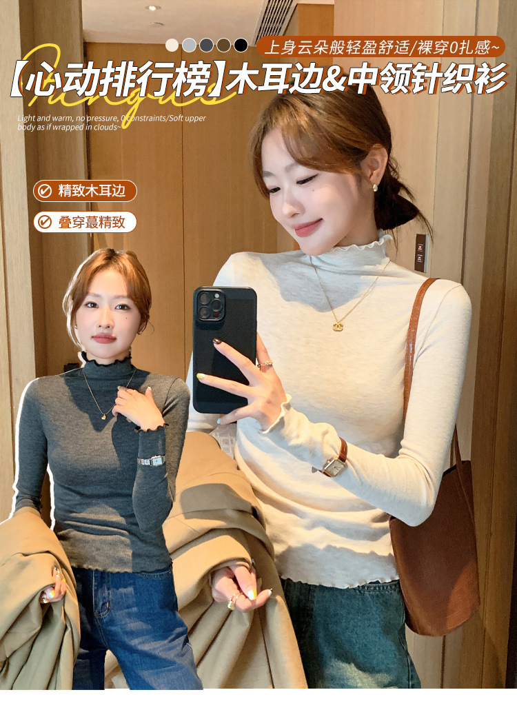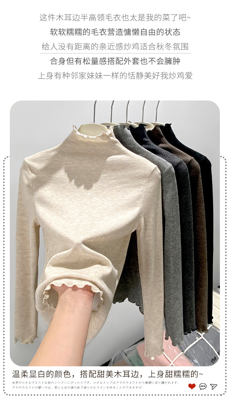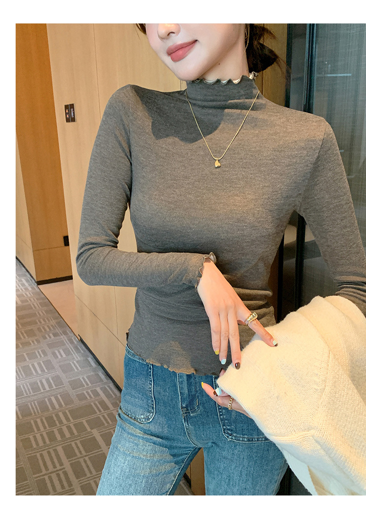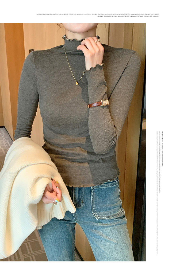 H360 귀 테두리 하프 터틀넥 베이스 셔츠의 엄격한 선택 여성용 가을 및 겨울 인테리어 슬림핏 올 매치 레이스 니트 셔츠 탑