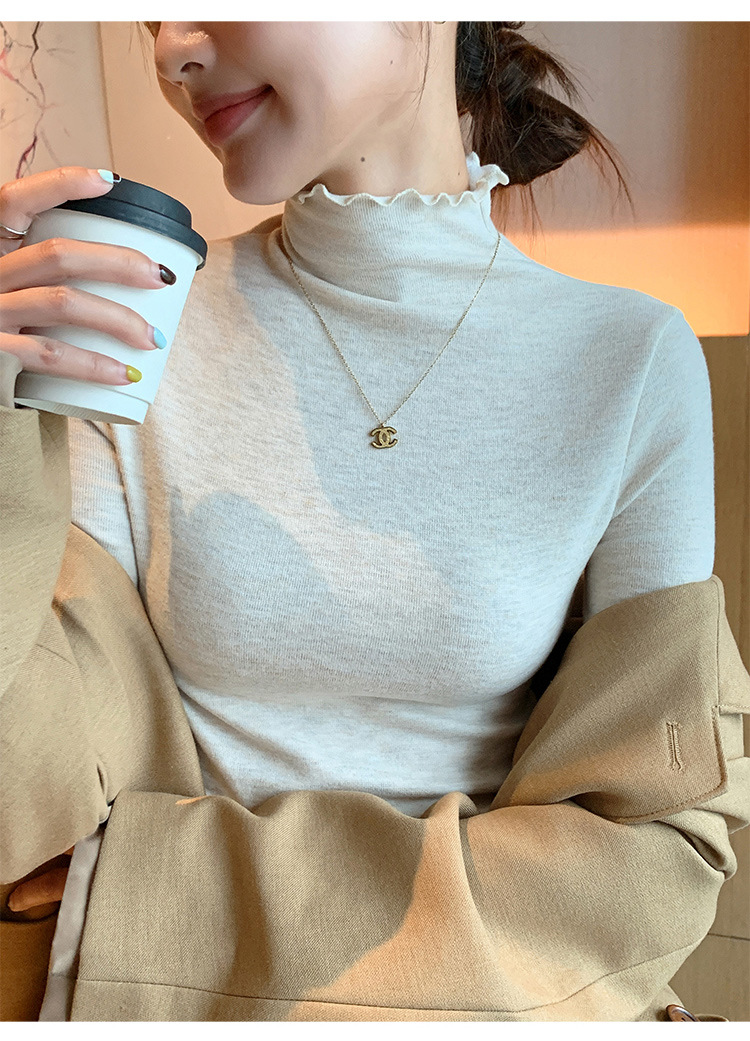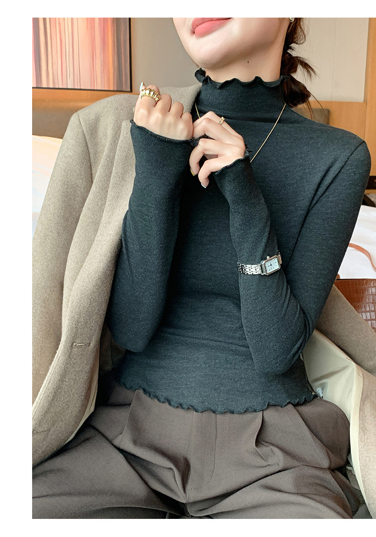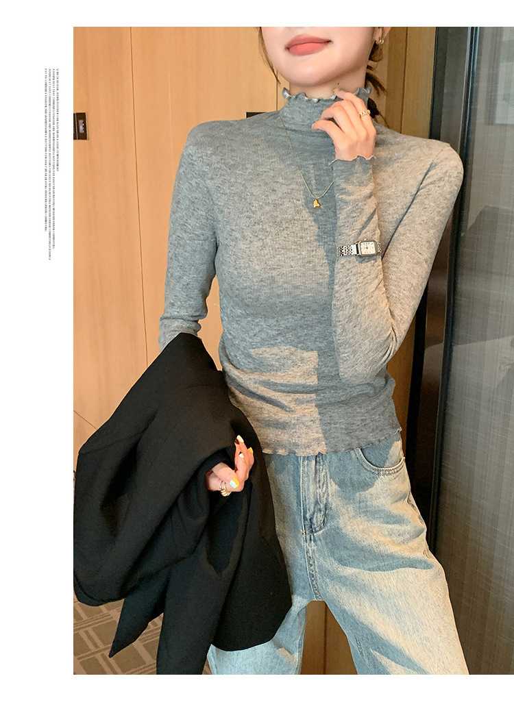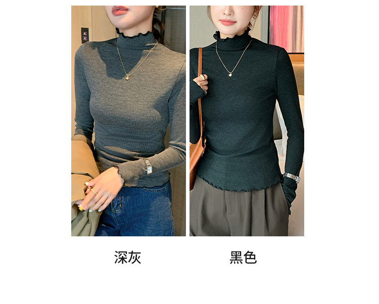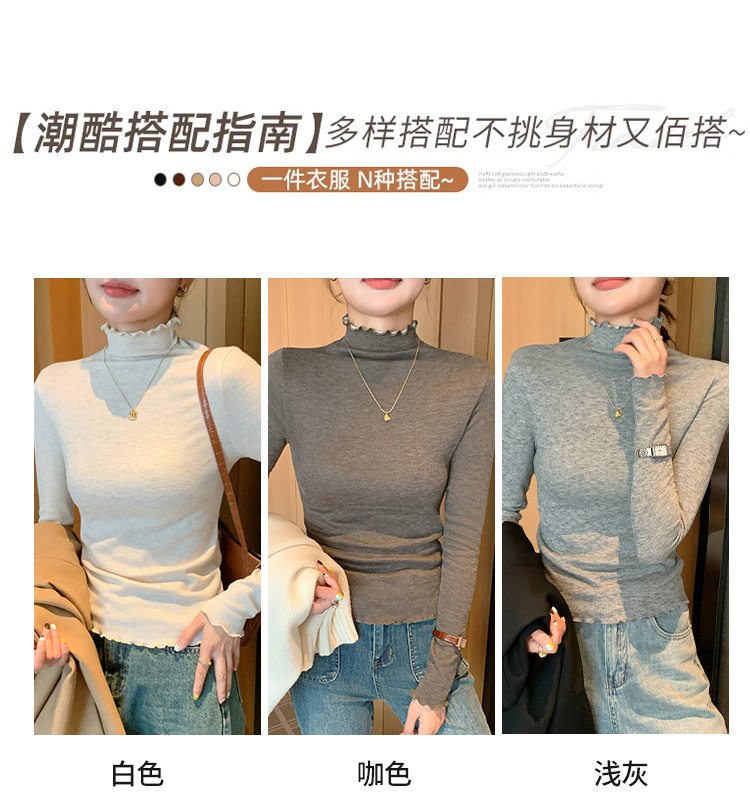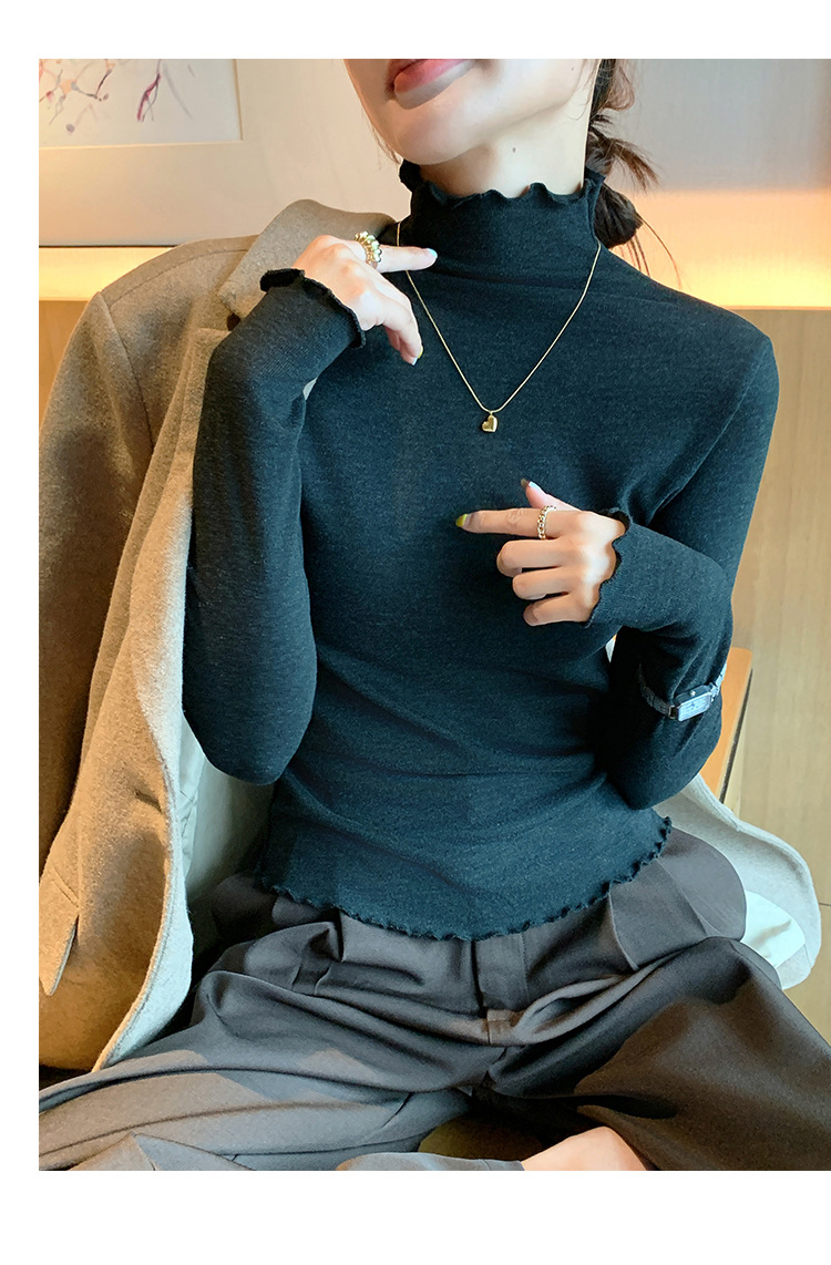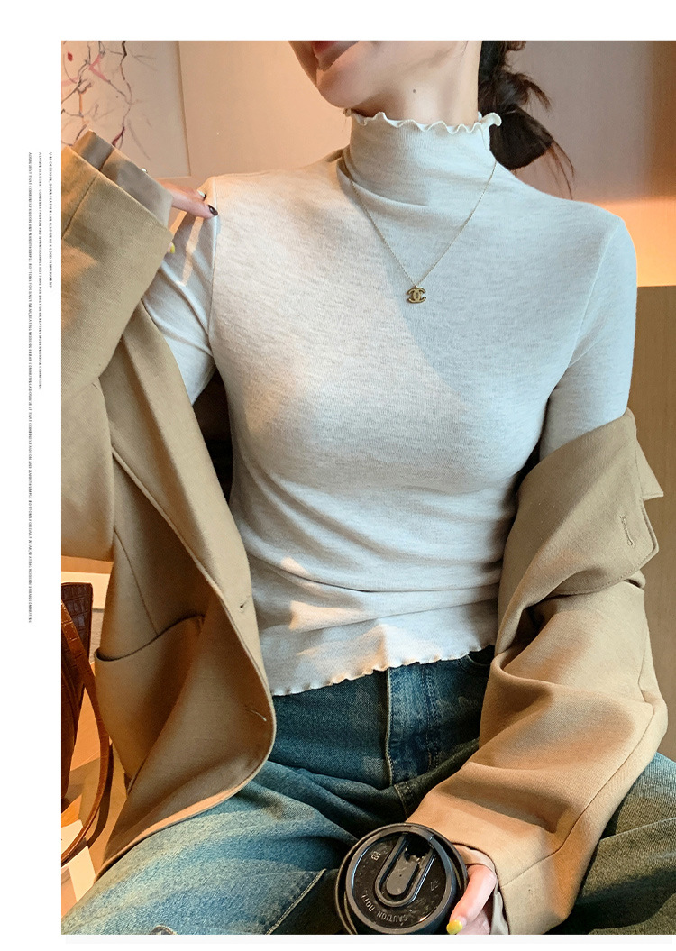 H360 귀 테두리 하프 터틀넥 베이스 셔츠의 엄격한 선택 여성용 가을 및 겨울 인테리어 슬림핏 올 매치 레이스 니트 셔츠 탑