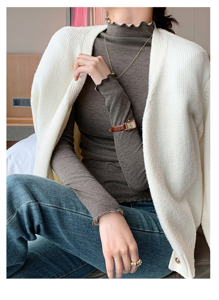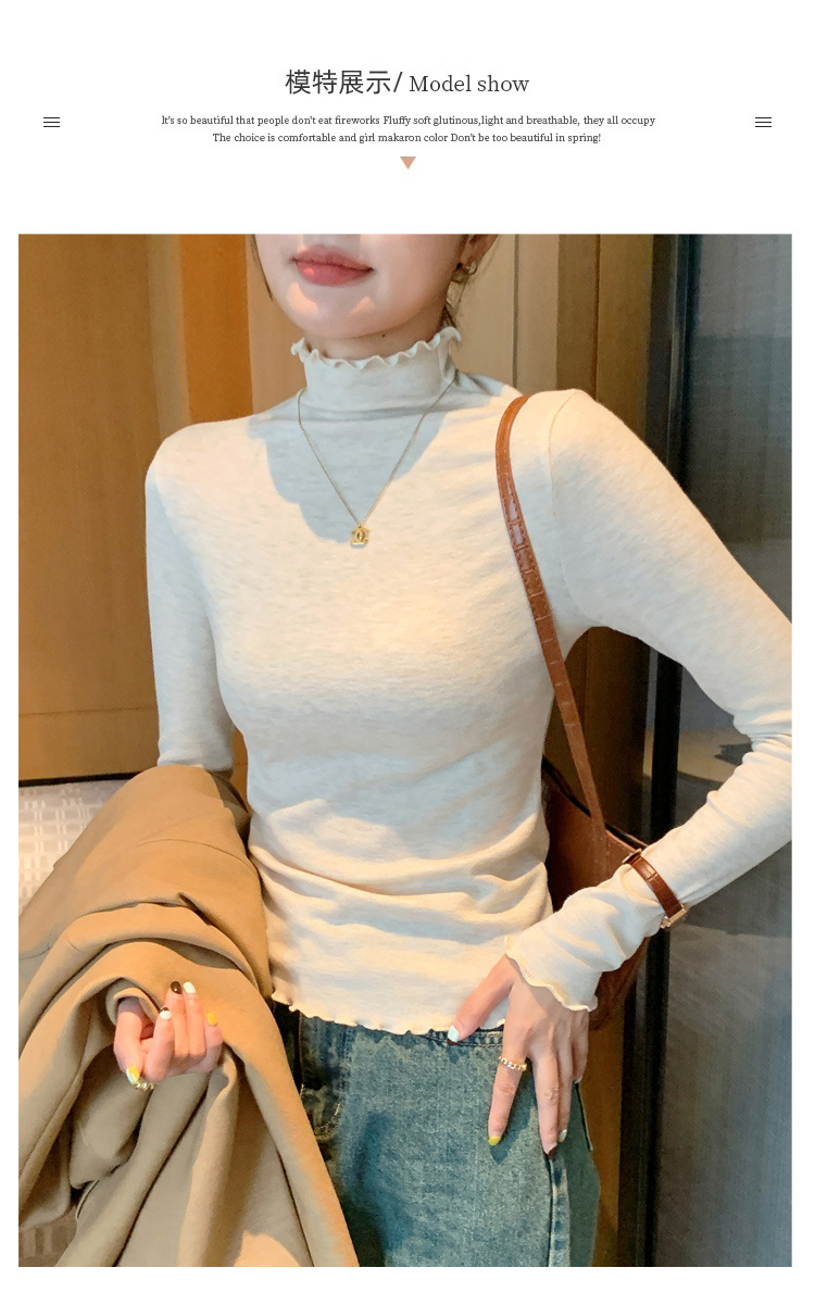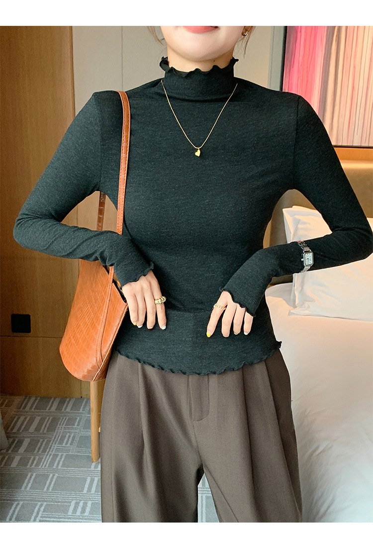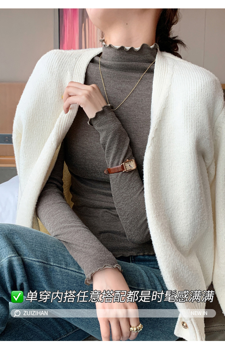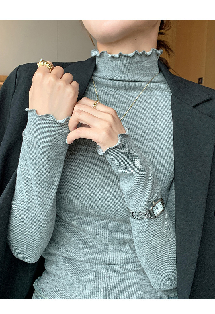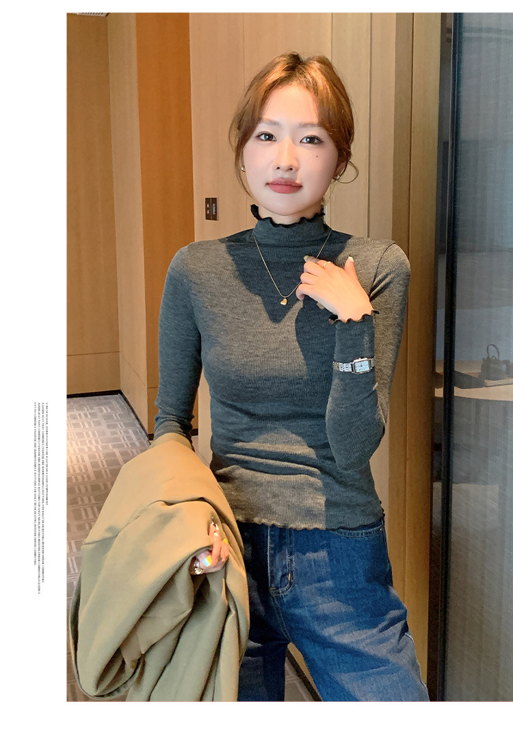H360 귀 테두리 하프 터틀넥 베이스 셔츠의 엄격한 선택 여성용 가을 및 겨울 인테리어 슬림핏 올 매치 레이스 니트 셔츠 탑