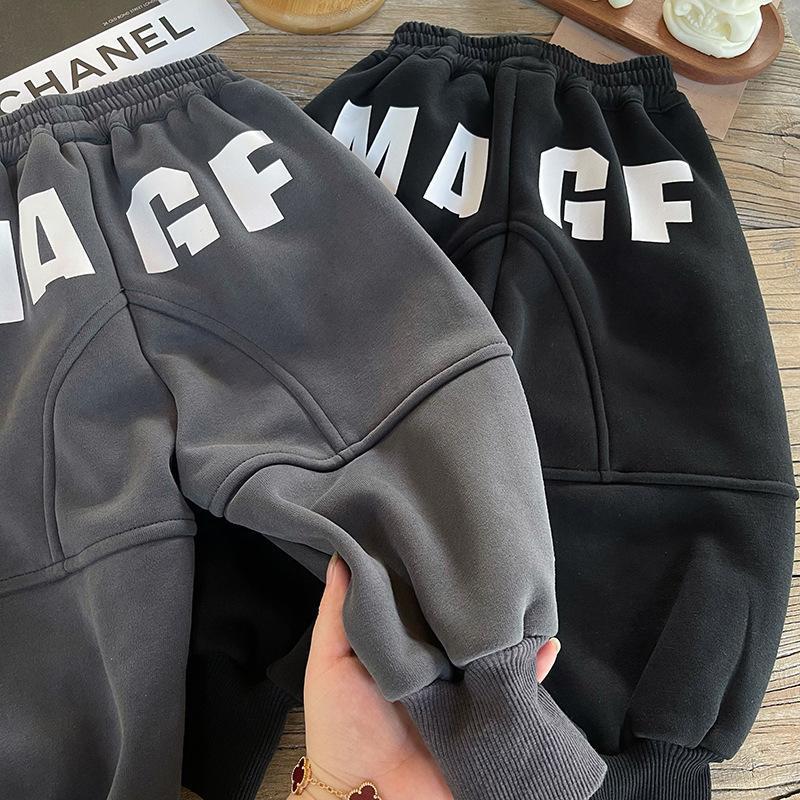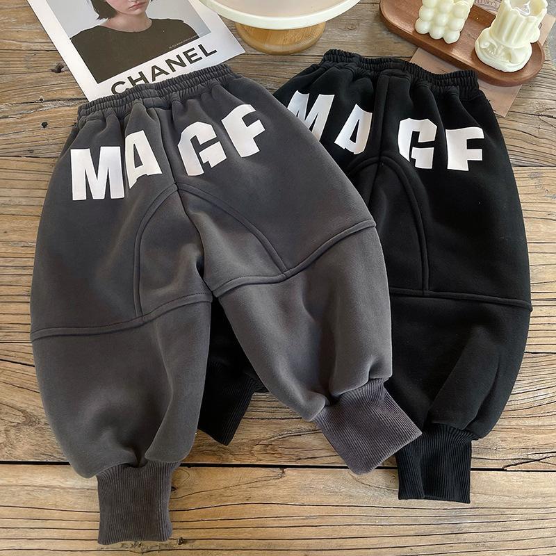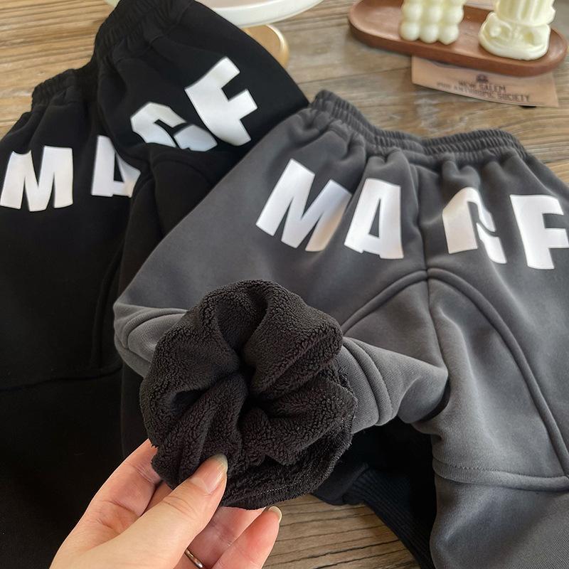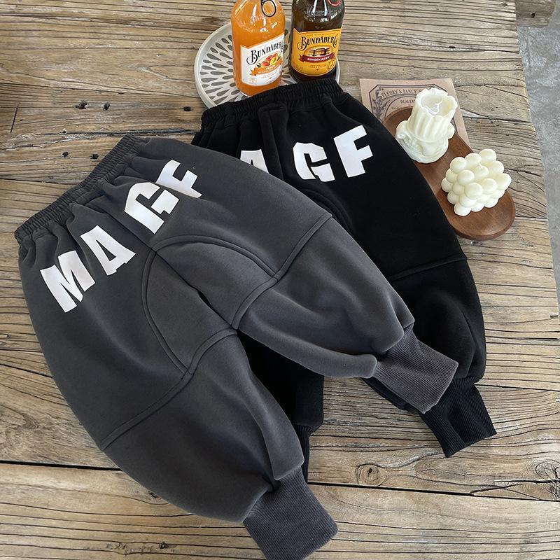 아기의 할란 팬츠 플러스 벨벳 할란 팬츠 2024 겨울 새 소년 및 소녀 원피스 벨벳 캐주얼 스웨트 팬츠 할란 팬츠스토어 가기
