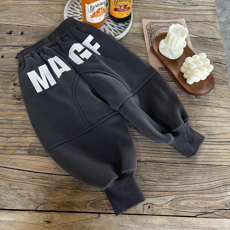 아기의 할란 팬츠 플러스 벨벳 할란 팬츠 2024 겨울 새 소년 및 소녀 원피스 벨벳 캐주얼 스웨트 팬츠 할란 팬츠