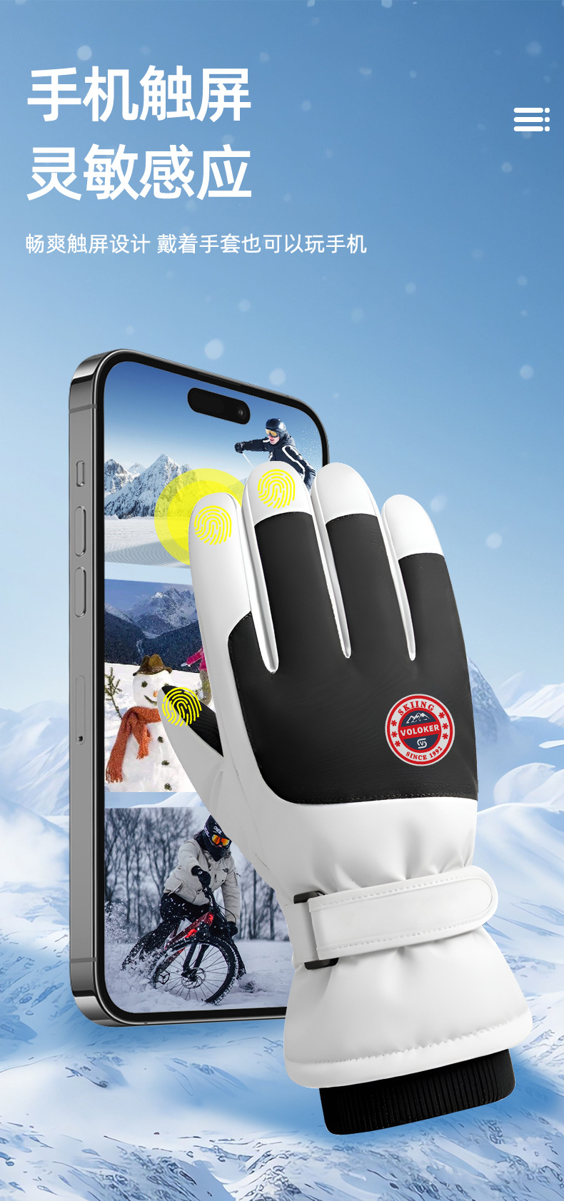겨울 스키 장갑 야외용 플러스 벨벳 보온 전기 자전거 라이딩 장갑 미끄럼 방지 방수 터치스크린 장갑 도매