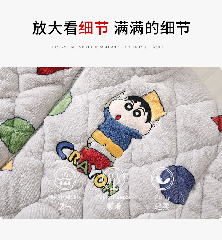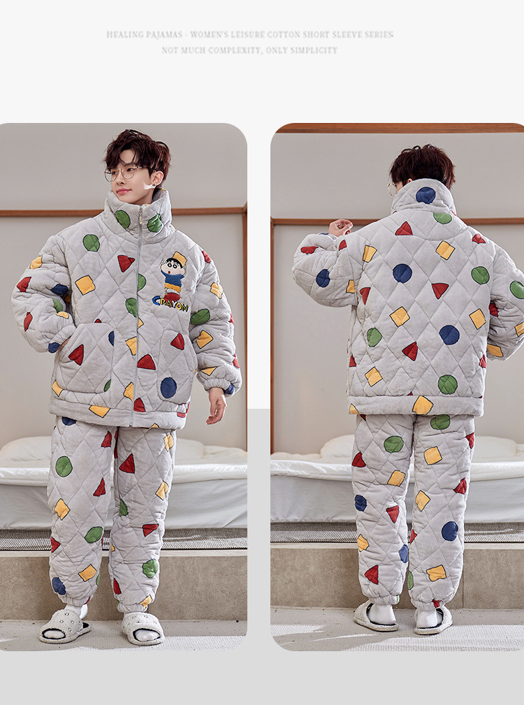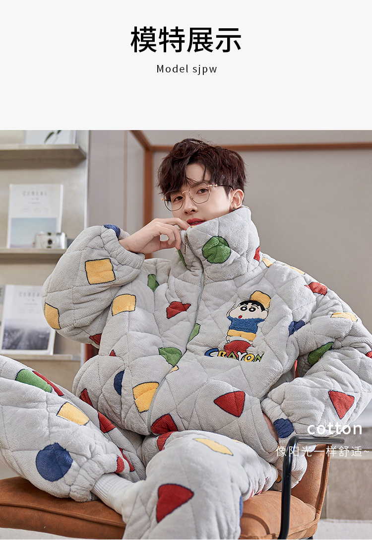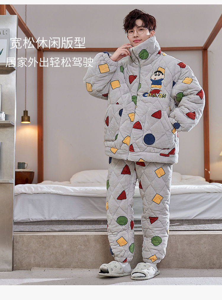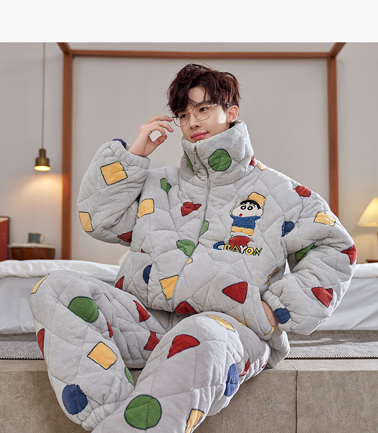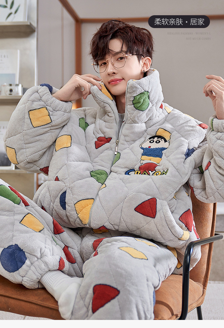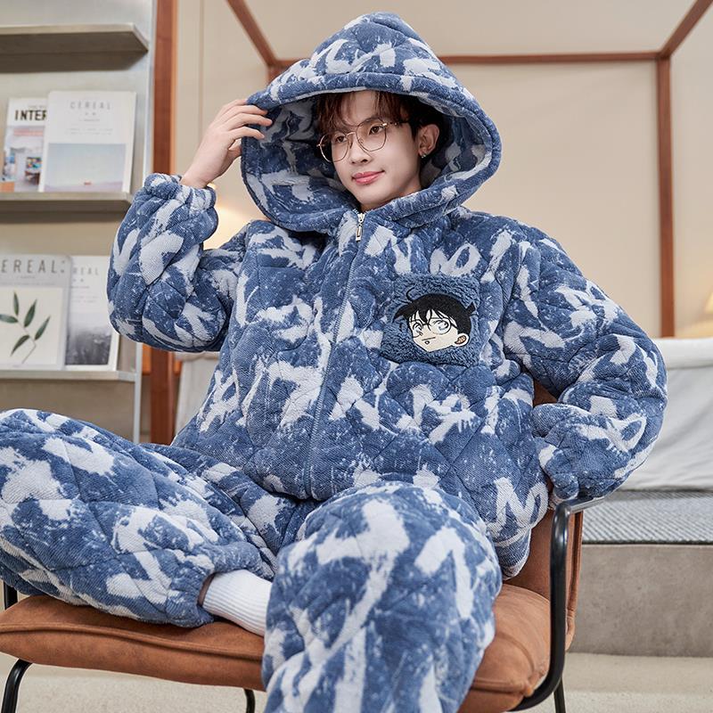 2024 새로운 산호 양털 파자마 남자 겨울 기모 두꺼운 남자 3 층 퀼트 가을과 겨울 십대스토어 가기