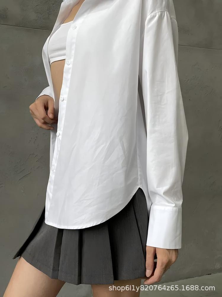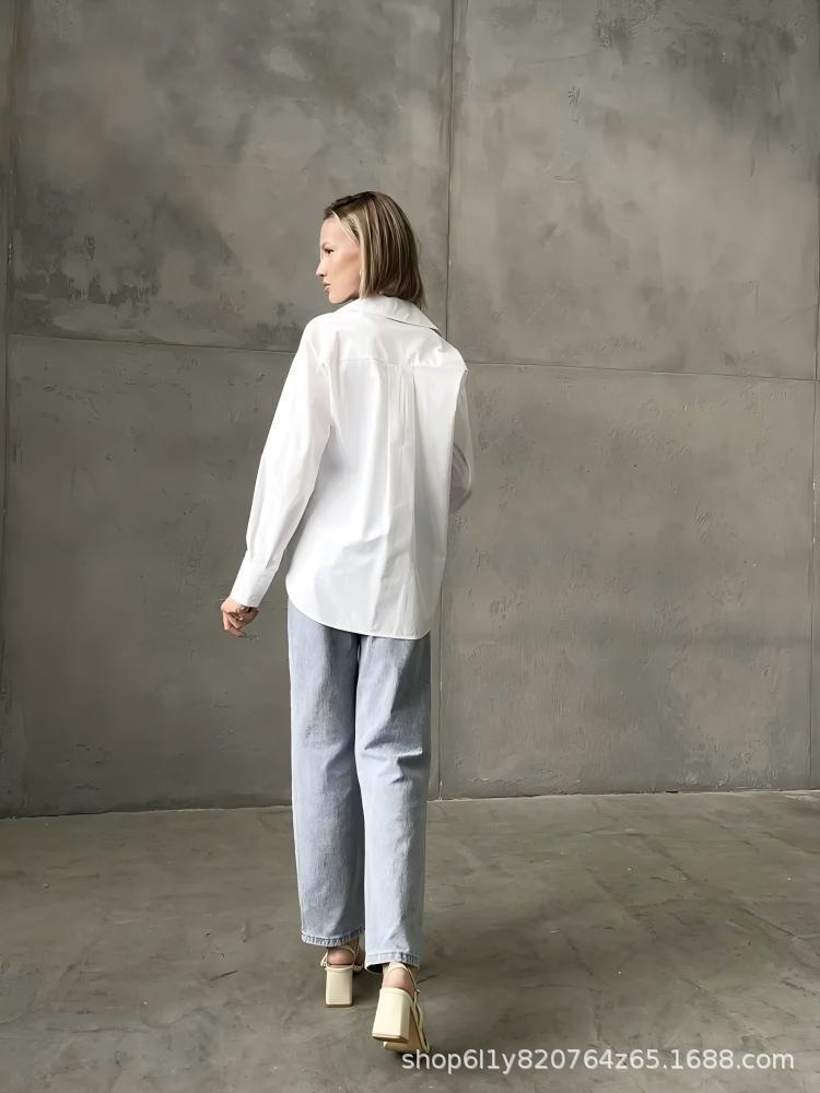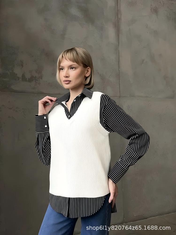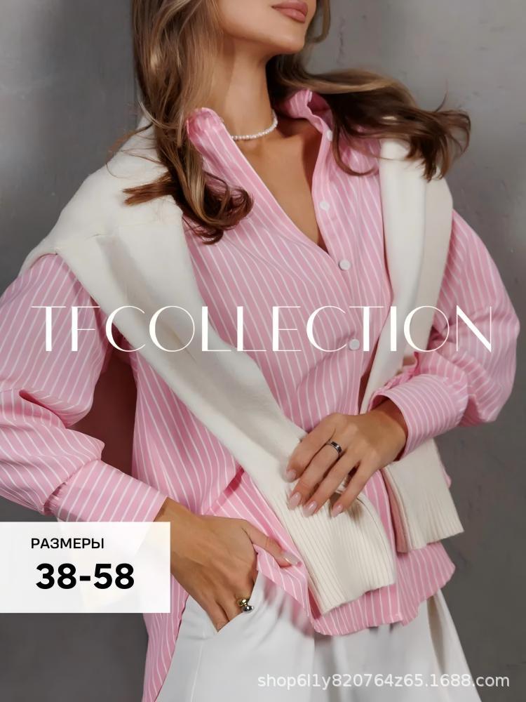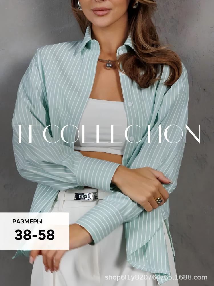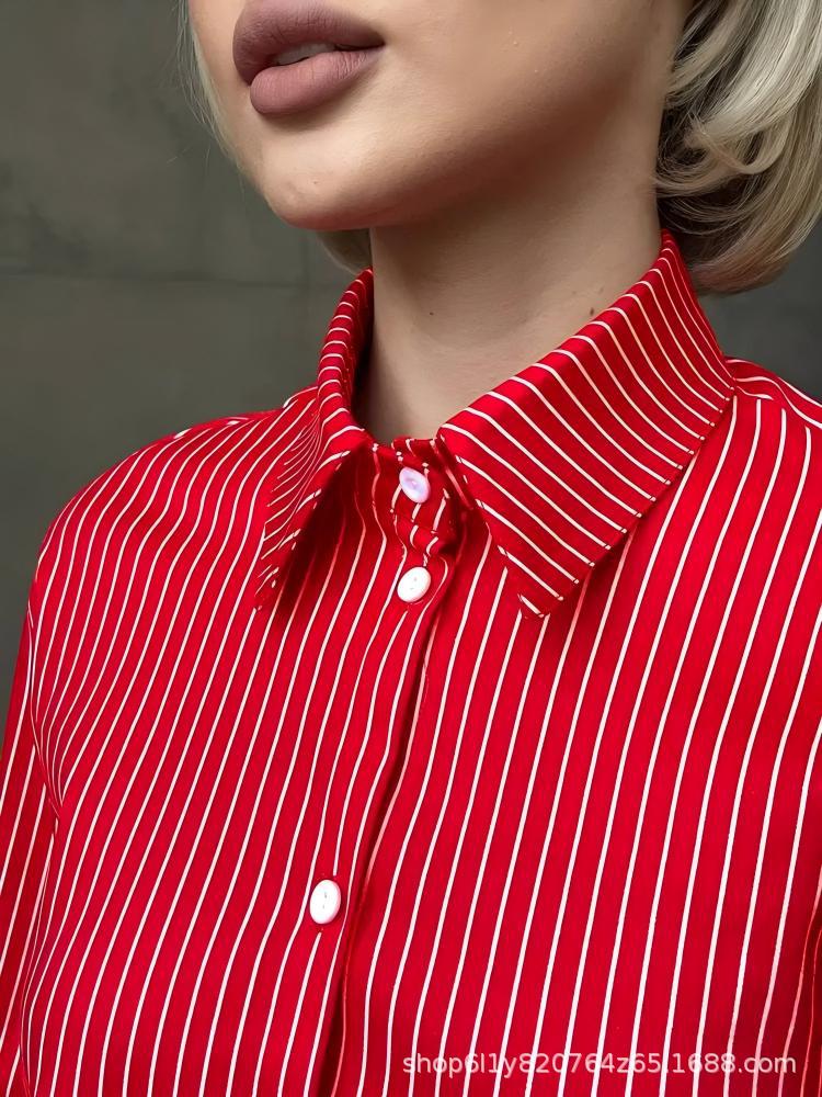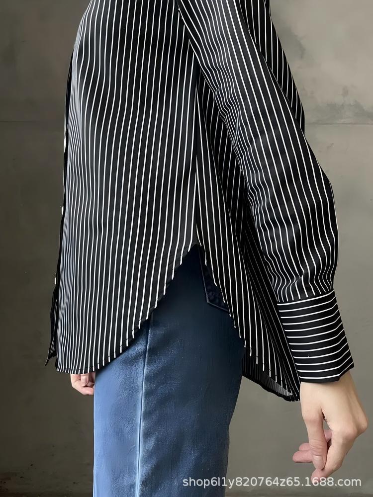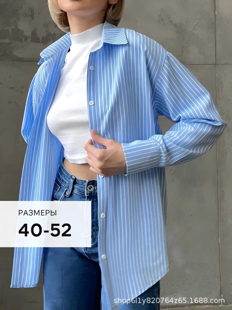 유럽과 미국의 대외 무역 여성의 2024 새로운 느슨한 플러스 사이즈 줄무늬 여성 셔츠 셔츠 캐주얼 긴 소매 셔츠